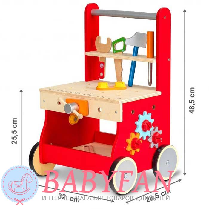 Дерев'яна майстерня інструментів EcoToys TL88042 – іграшка для найменших любителів скручування, з'єднання та будівництва. У штовхача є багато цікавих особливостей, які змусять вашого малюка тренуватися та розвивати його мануальні та моторні навички, окрім задоволення. Крім того, під час самостійної роботи дитина розвиватиме свою уяву, креативність та базові знання про інструменти та їх використання. Завдяки дерев'яним аксесуарам дитина зможе зіграти роль «різноробочого».
