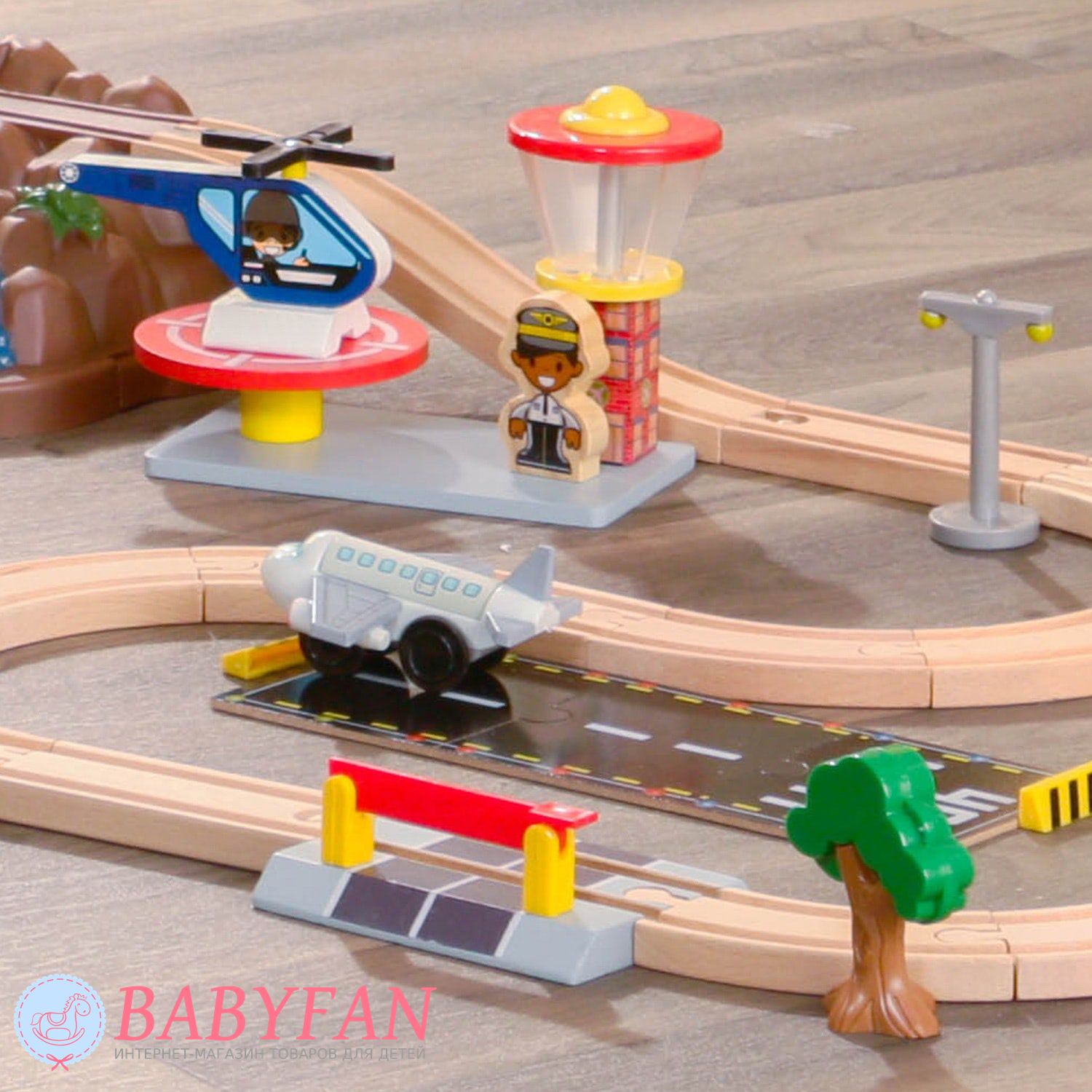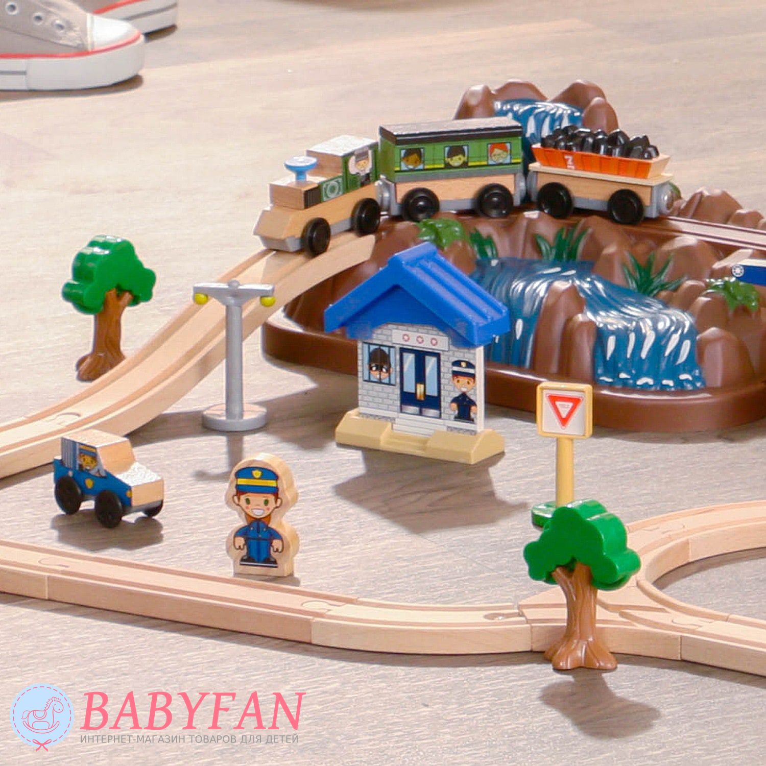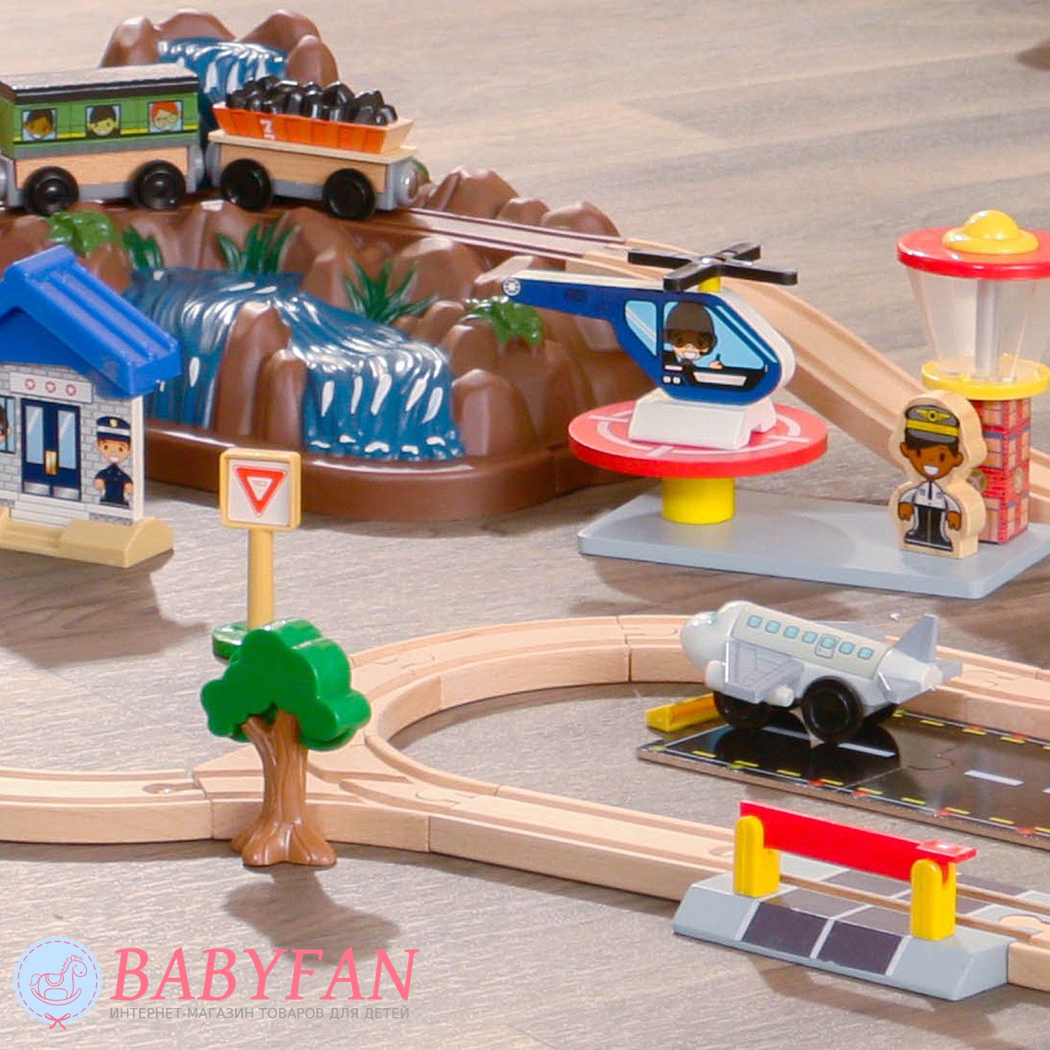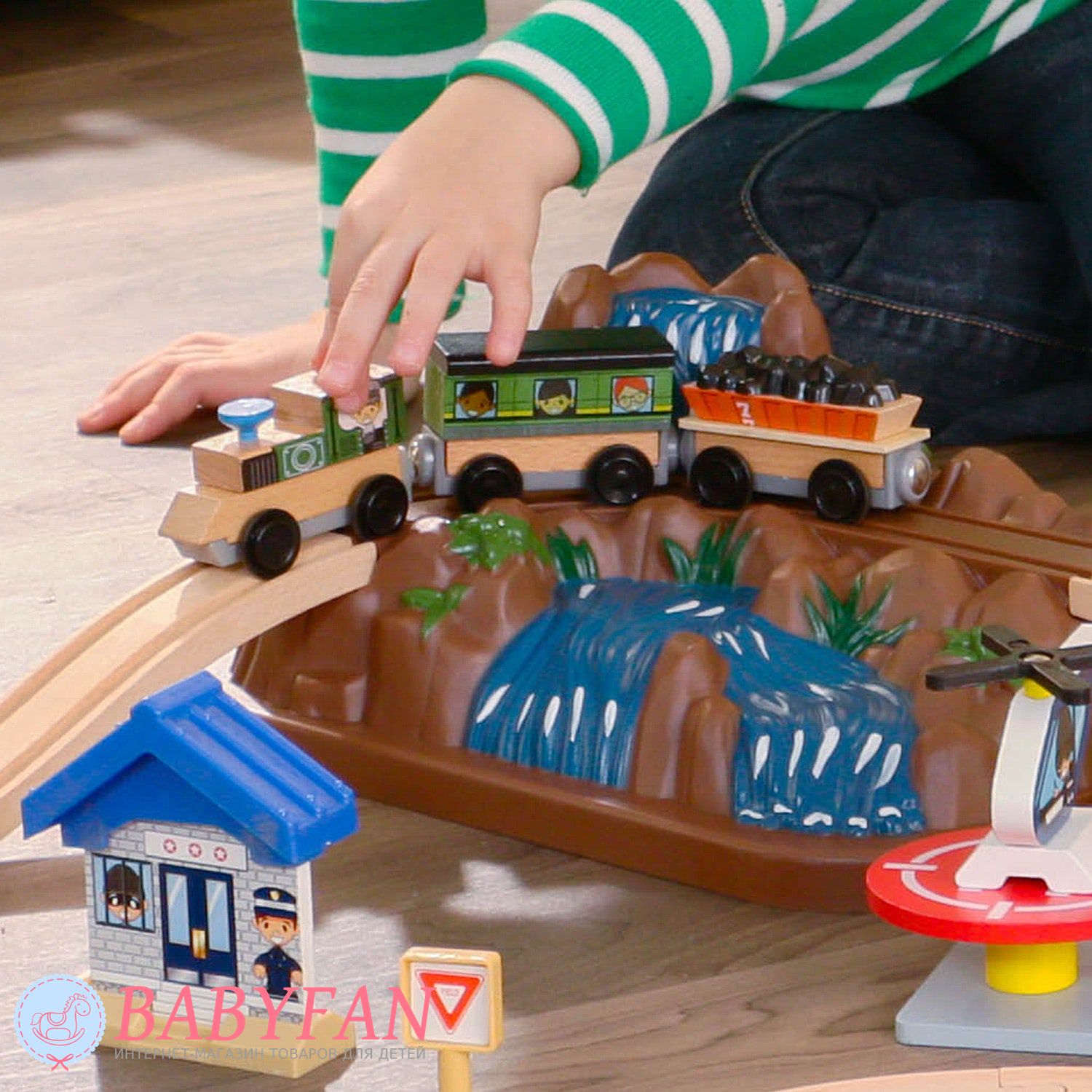 - можливість використовувати дерев'яні набори поїздів Brio та Thomas&Friends, що дозволити урізноманітнити ігри, а також брати участь у грі декільком дітям, адже розміри дерев'яної залізниці 17826 Bucket Top Mountain це дозволяють.