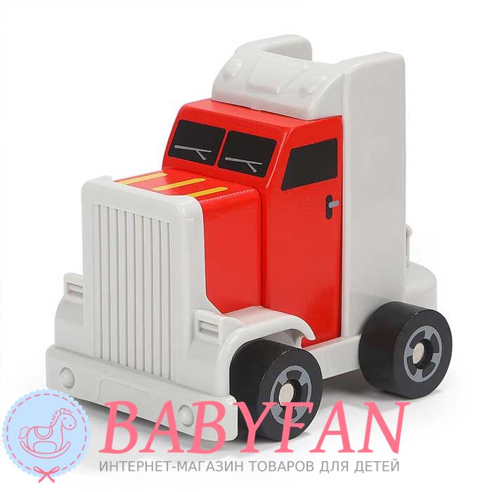 Причіп від'єднується, повертається та розкладається у гоночний спуск. На нижню платформу автомобілі заїжджають, на верхню – занурюються. На платформу можна завантажувати не лише автомобілі, а й будівельні матеріали, кубики та блоки конструктора. З автовозом можна грати в сюжетні ігри вдома та на вулиці у піску.