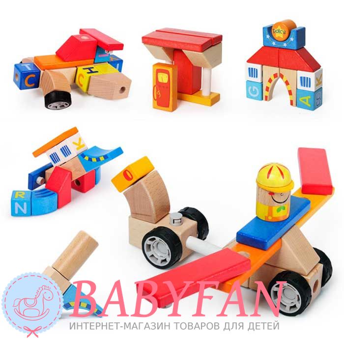 Конструктор складається з блоків великого розміру, які дитина не зможе проковтнути. Не має неприємного запаху, гострих кутів та граней. Розвиває дрібну моторику, мислення, уяву та творчі навички. Вчить розрізняти форму та колір предметів. Підійде для сюжетних ігор із батьками. В ігровій формі можна пояснити дитині правила дорожнього руху.