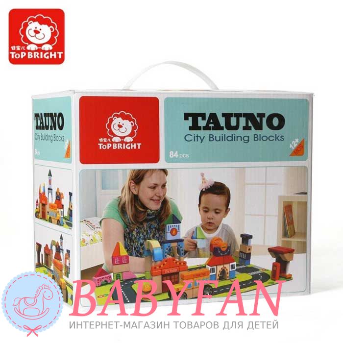 Конструктор Top Bright 120114 - це маленьке містечко, що складається з дерев'яних блоків, для хлопчиків та дівчаток старше 1 року. Призначений для рольових та сюжетних ігор разом із батьками. На картонному полотні з розміченою замкненою дорогою шикуються: школа, пожежна станція, поліцейська ділянка, центральна акра з дзвоном та заправна станція. Блоки з'єднуються без збирання. З блоків збирається шкільний автобус із водієм.