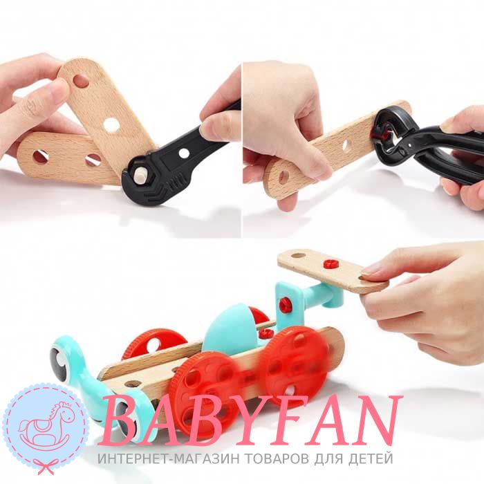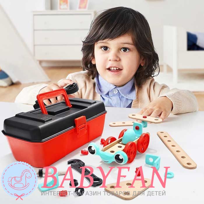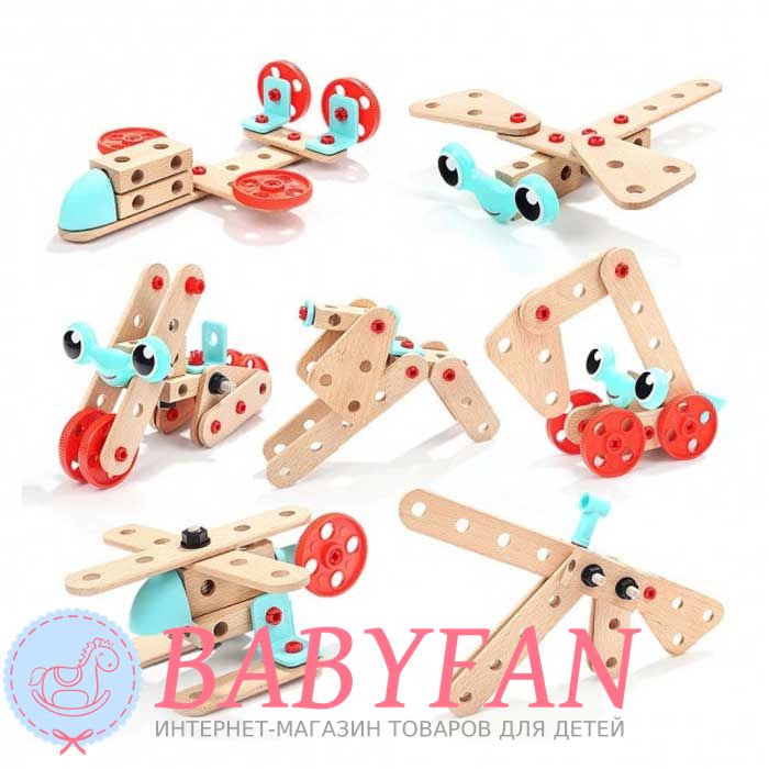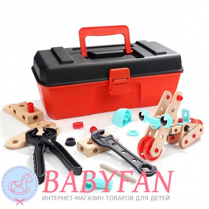 Валіза Top Bright 120390 – це дерев'яний конструктор для хлопчиків та дівчаток віком від 3 років. Складається з 53 елементів, має бокс та інструмент для складання: автомата, вертольота, колісного крана, собачки, мотоцикла, літака та гідроплану. Збирається за допомогою гайкового ключа та кліщів. З'єднаннями служать кліпси та шпильки з гайками. Виготовлений із міцного та легкого пластику – з'єднання та дерева – сполучні пластини. Не має неприємного та шкідливого для здоров'я запаху, не викликає алергічної реакції. Розвиває дрібну моторику, логіку, мислення, уяву. Вчить розрізняти форму та призначення предметів. Запакований у валізку з ручкою для перенесення.
