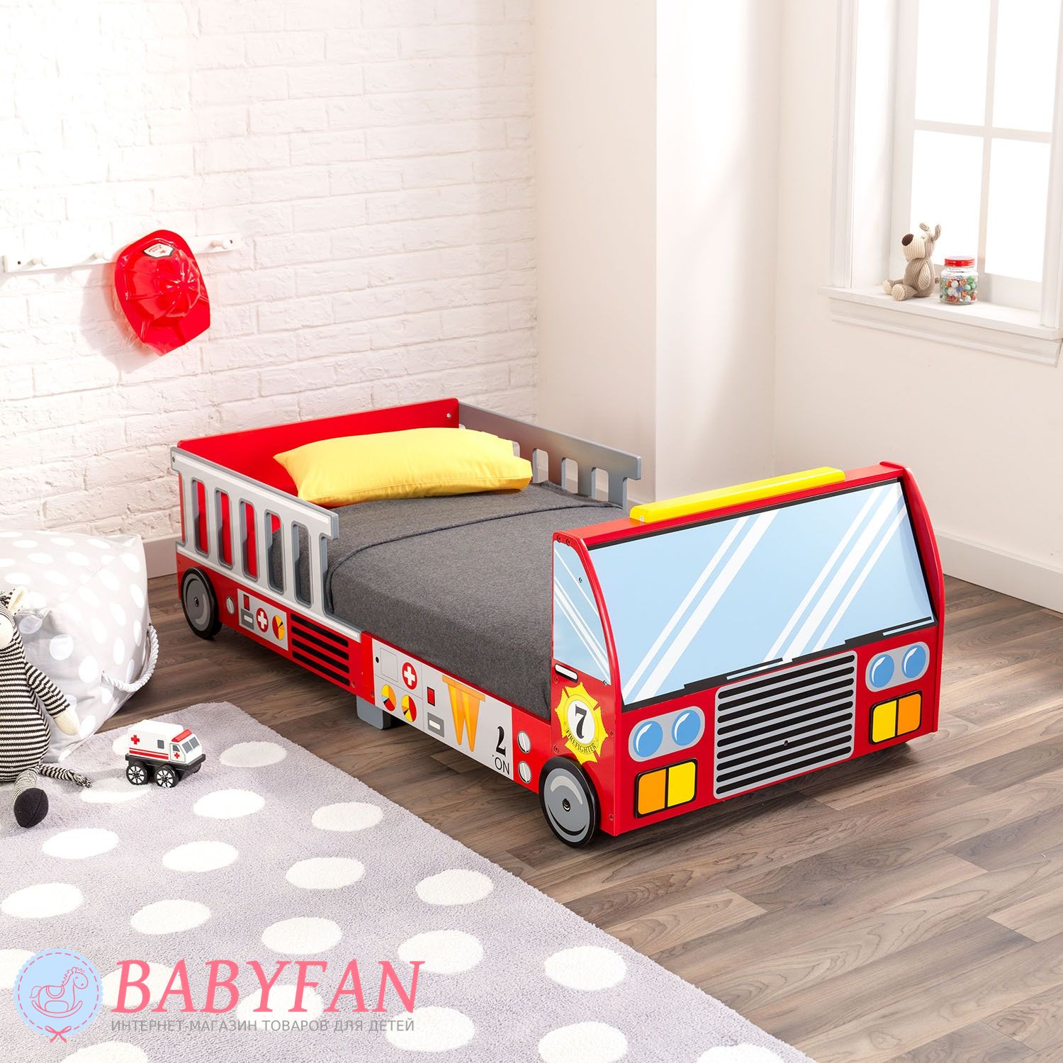 Дитяче ліжечко KidKraft 76031 «Fire Truck» – яскраве ліжечко у вигляді пожежної машини з обмежувачами біля узголів'я, що запобігають випадковому падінню з ліжка під час сну. Ліжечко з низьким підйомом, що дозволяє дитині самостійно нею користуватися. Постільні речі або іграшки можна зберігати в спеціальному відсіку. Це комфортне ліжечко прослужить для дитини кілька років.