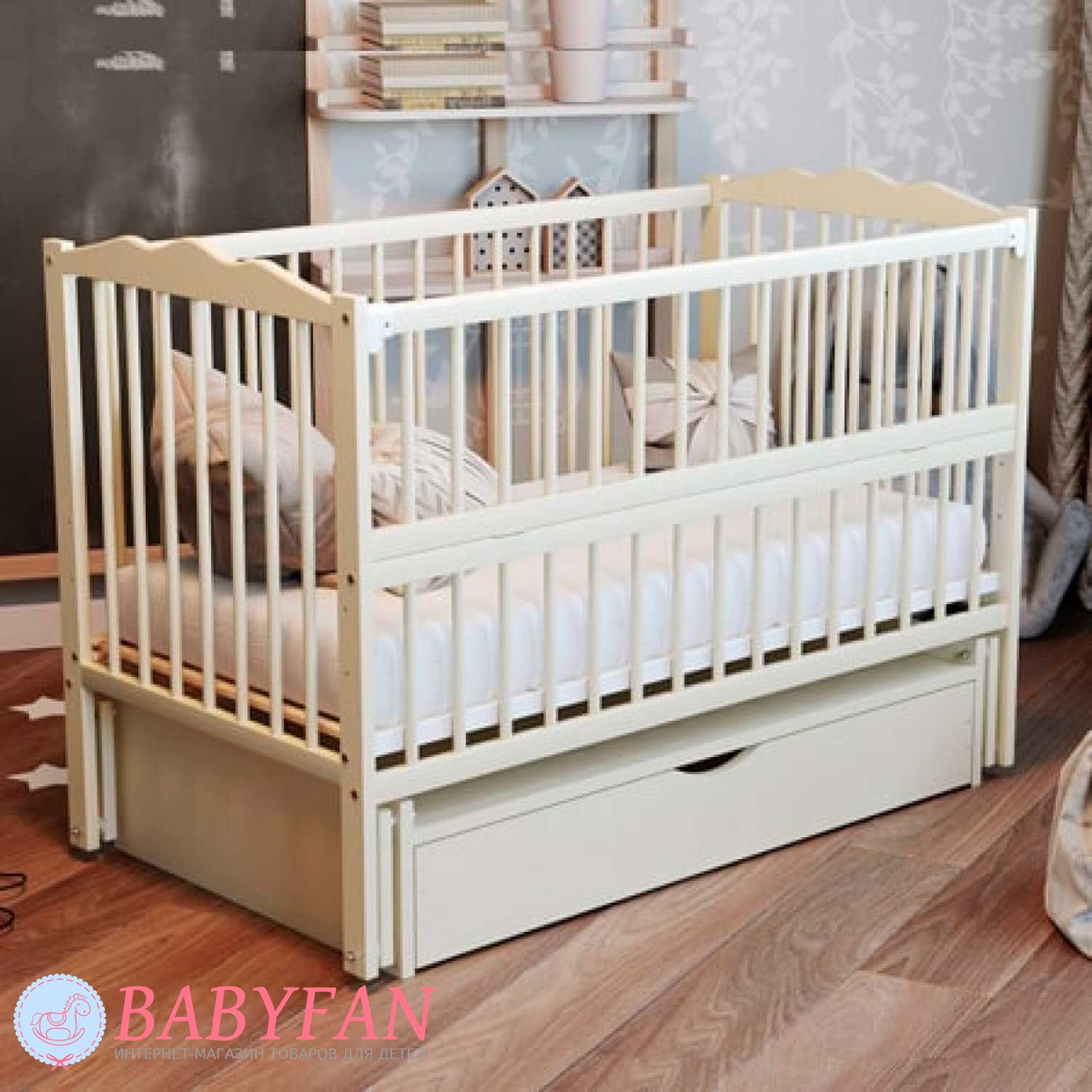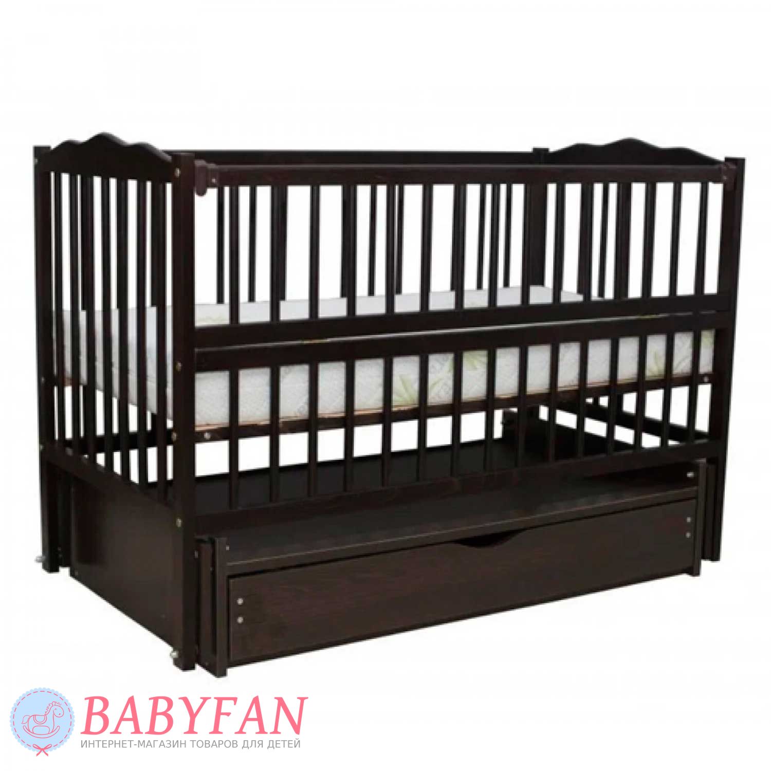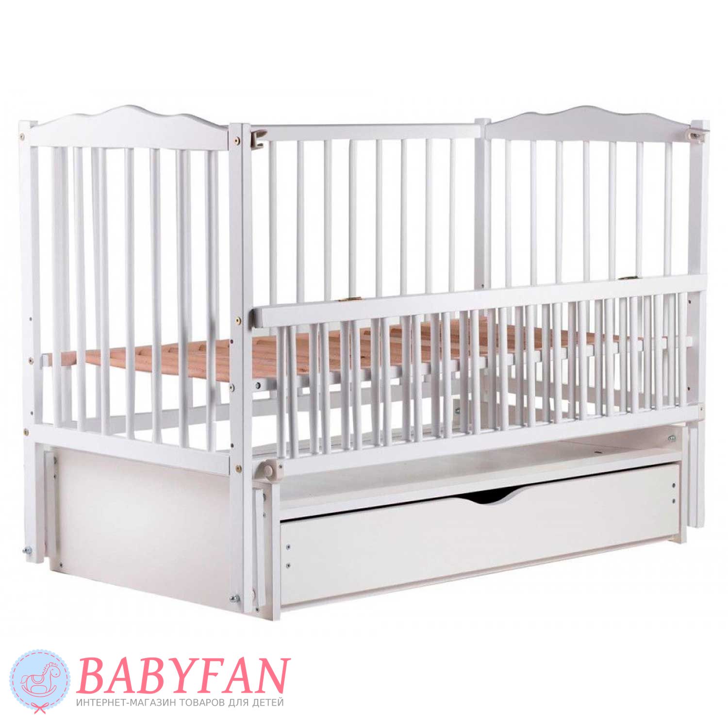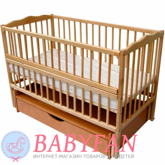 Дитяче ліжечко Дубок Веселка шарнір/ящик - від українського виробника гармонійно впишеться в інтер'єр будь-якої дитячої кімнати. Ліжечко виготовлене з натурального дерева і покрите безпечними фарбами, стійкими до подряпин. Ліжечко оснащене великою нижньою скринькою для білизни та іншого дитячого приладдя. А боковинка, що опускається, забезпечить мамі швидкий доступ до дитини.