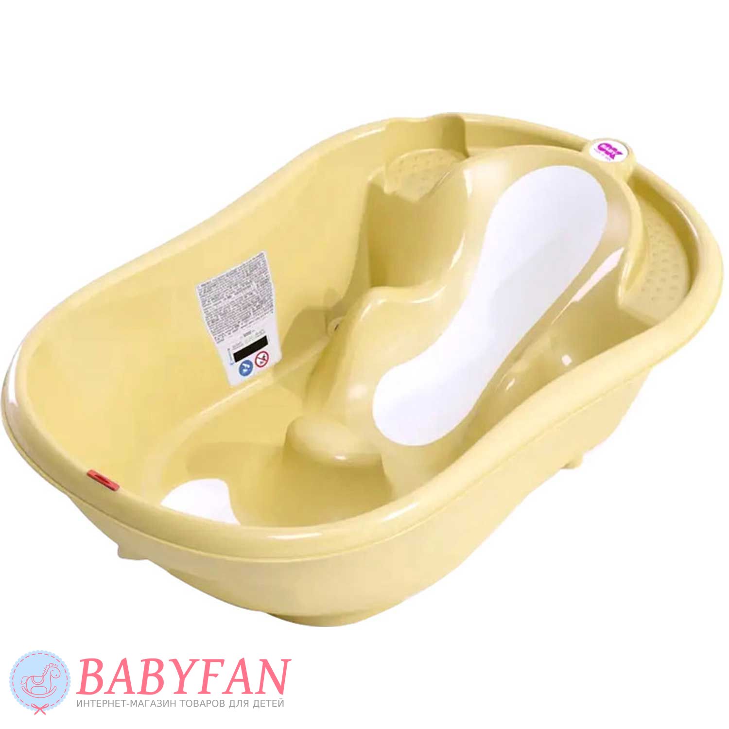 Дитяча ванна OK Baby Onda Evolution, 808 – з анатомічною гіркою та термодатчиком, пристосована до зростання дитини завдяки двом варіантам: від 0 до 6 місяців (положення лежачи), від 6 до 12 місяців (положення сидячи). Дитяча ванна "Onda" розроблена та виготовлена відповідно до обов'язкових норм та вимог до дитячих товарів та має всі необхідні сертифікати якості.