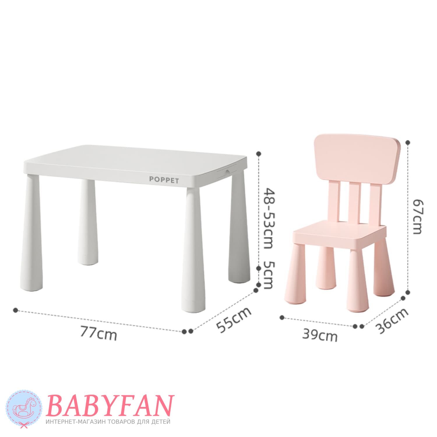Цей комплект стане незамінним помічником для організації дитячої кімнати або ігрової зони. Основна перевага столика та стільця Poppet Маммут – це їхня практичність та довговічність. Матеріали мають високу зносостійкість, легко чистяться і стійкі до повсякденних випробувань, з якими стикаються меблі в дитячій. Саме тому цей комплект рекомендується для активних та творчих дітлахів.