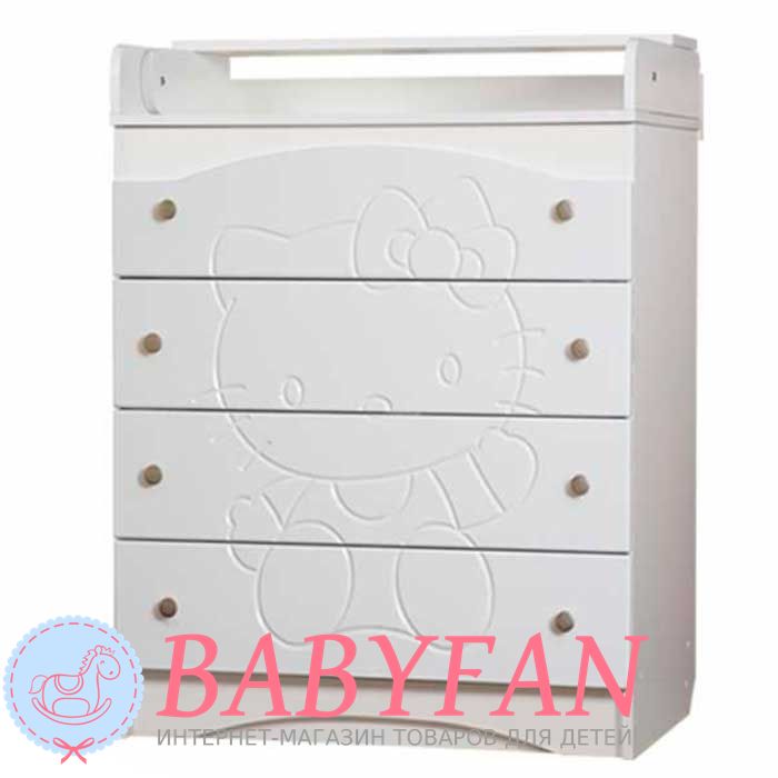- верхня кришка відкидається і утворюється великий (80×74 см) пеленальний столик, а в той же час у закритому стані комод займає трохи місця. Як тільки дитина виросте, відкидну кришку можна зняти, і комод відповідатиме своєму класичному варіанту;
