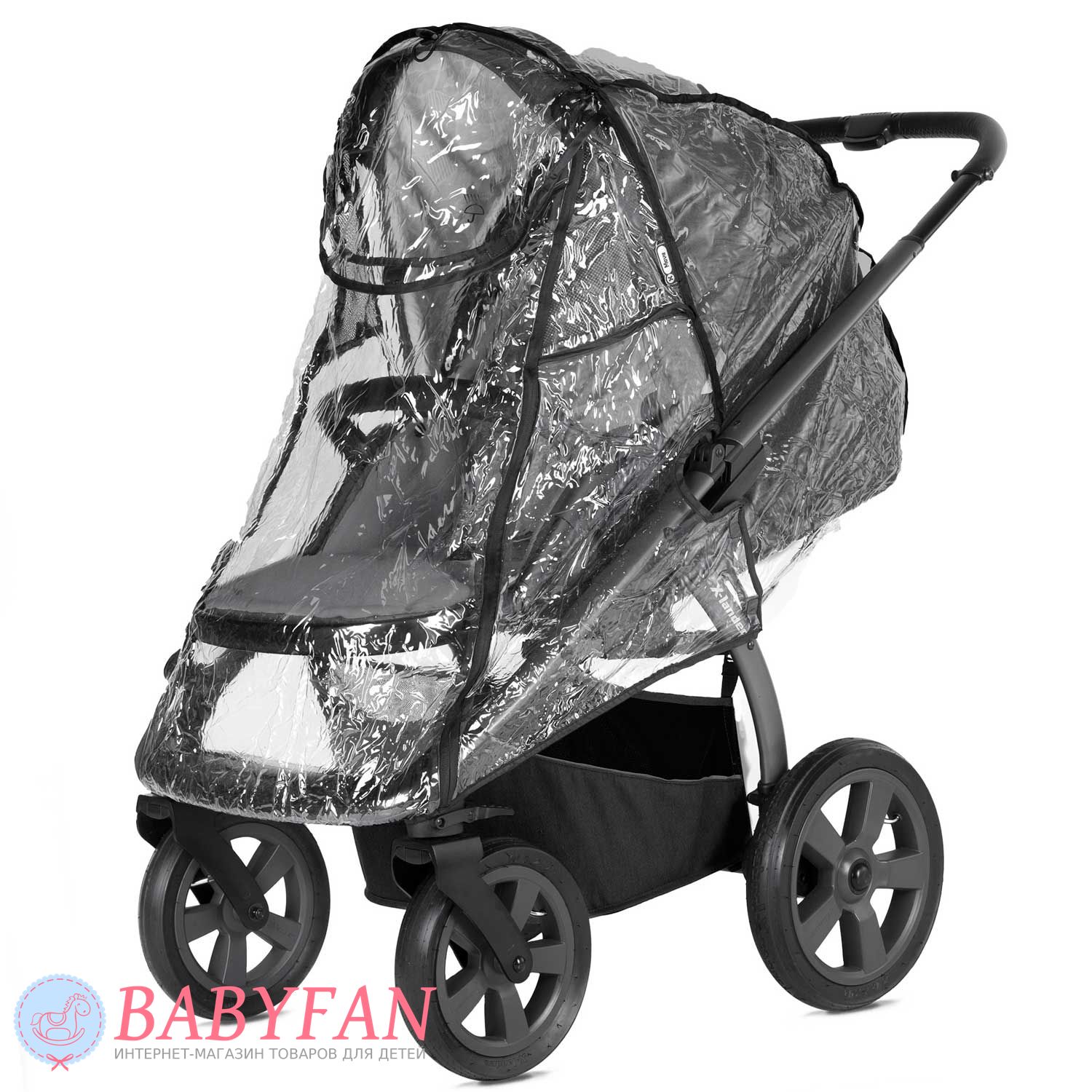 - закриває всю коляску повністю, дозволяючи їй залишатися сухою навіть під час сильного дощу.