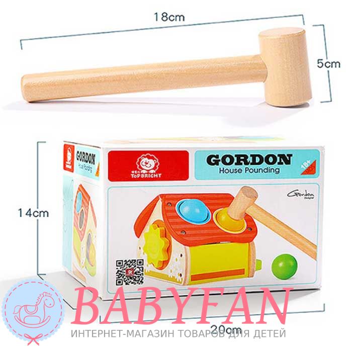 Іграшка Top Bright 6947 – це барвистий будиночок з м'ячиками та молоточком для дітей віком від 1 року. Ціль гри – сортування елементів одного кольору. Виконана у формі невеликого дерев'яного будиночка з 4 отворами в даху, з окантовкою різних кольорів. У комплекті є чотири різнокольорові кульки. Завдання для дитини - правильно відсортувати кульки за кольором, розташувати їх на даху, а потім проштовхнути молоточком через отвори.