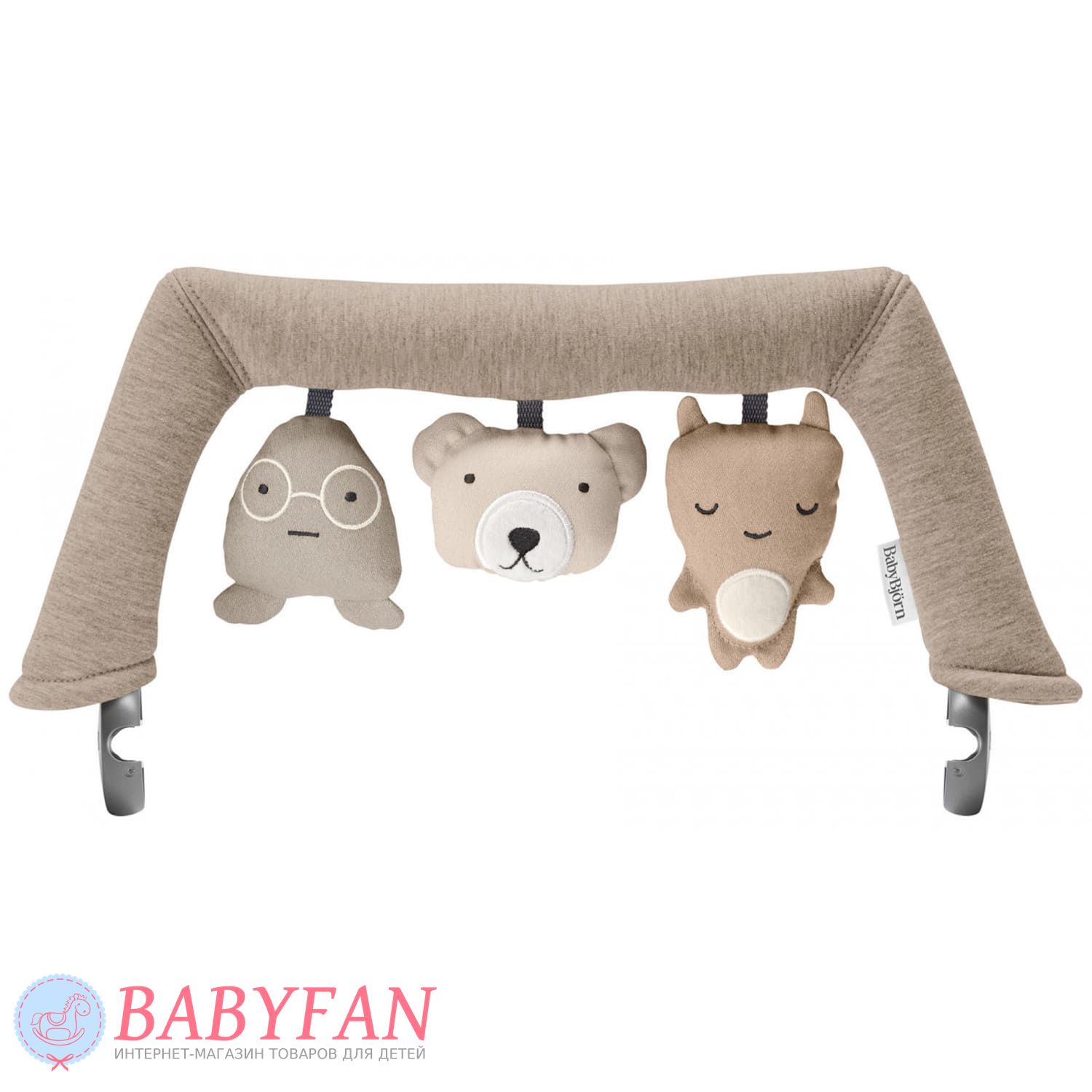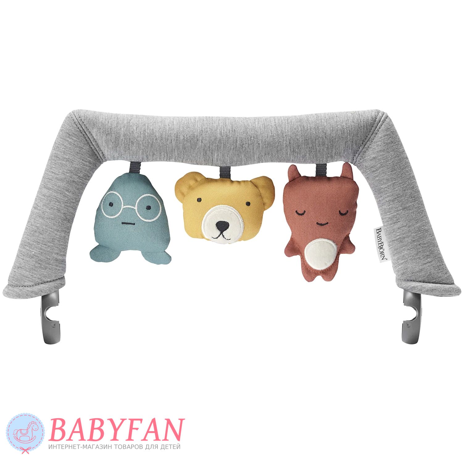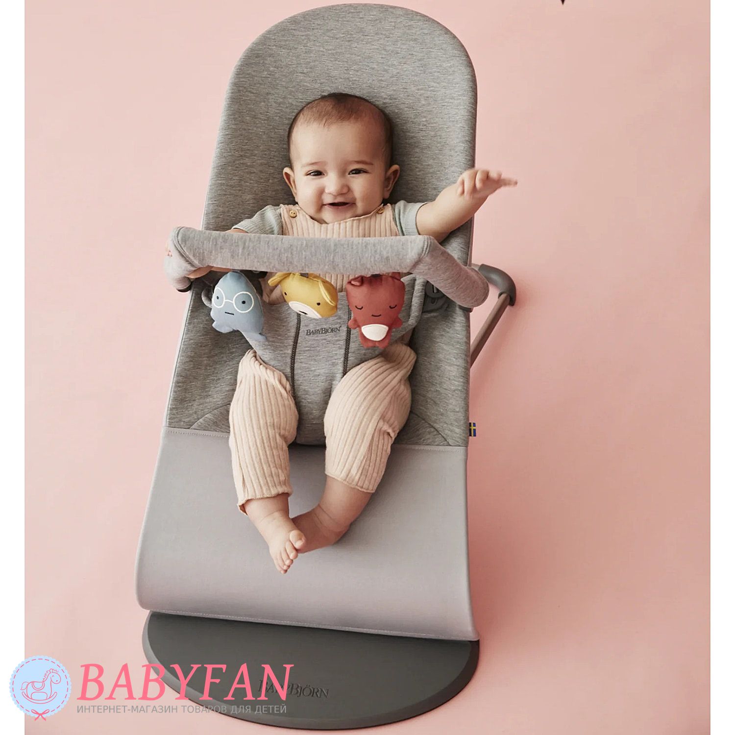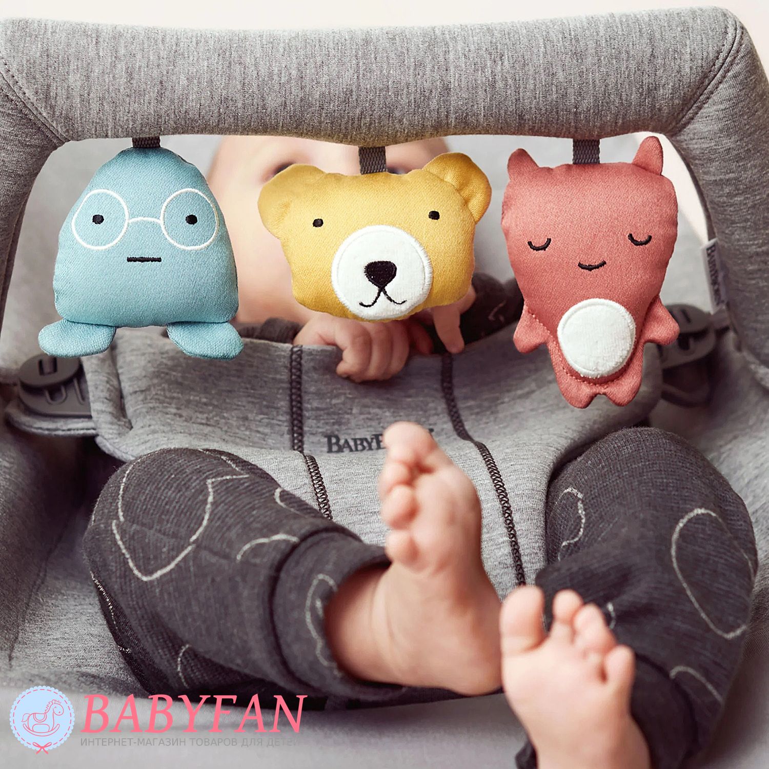 Дуга з іграшками BabyBjorn Soft Friends підходить для всіх шезлонгів BabyBjorn. Симпатичні плюшеві іграшки-фігурки рухаються, коли дитина хитається у кріслі. М'які та ніжні на дотик. Прихований дзвінок видає м'який та приємний звук. Машинне прання при 40°С.