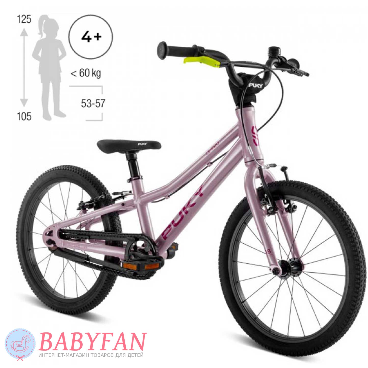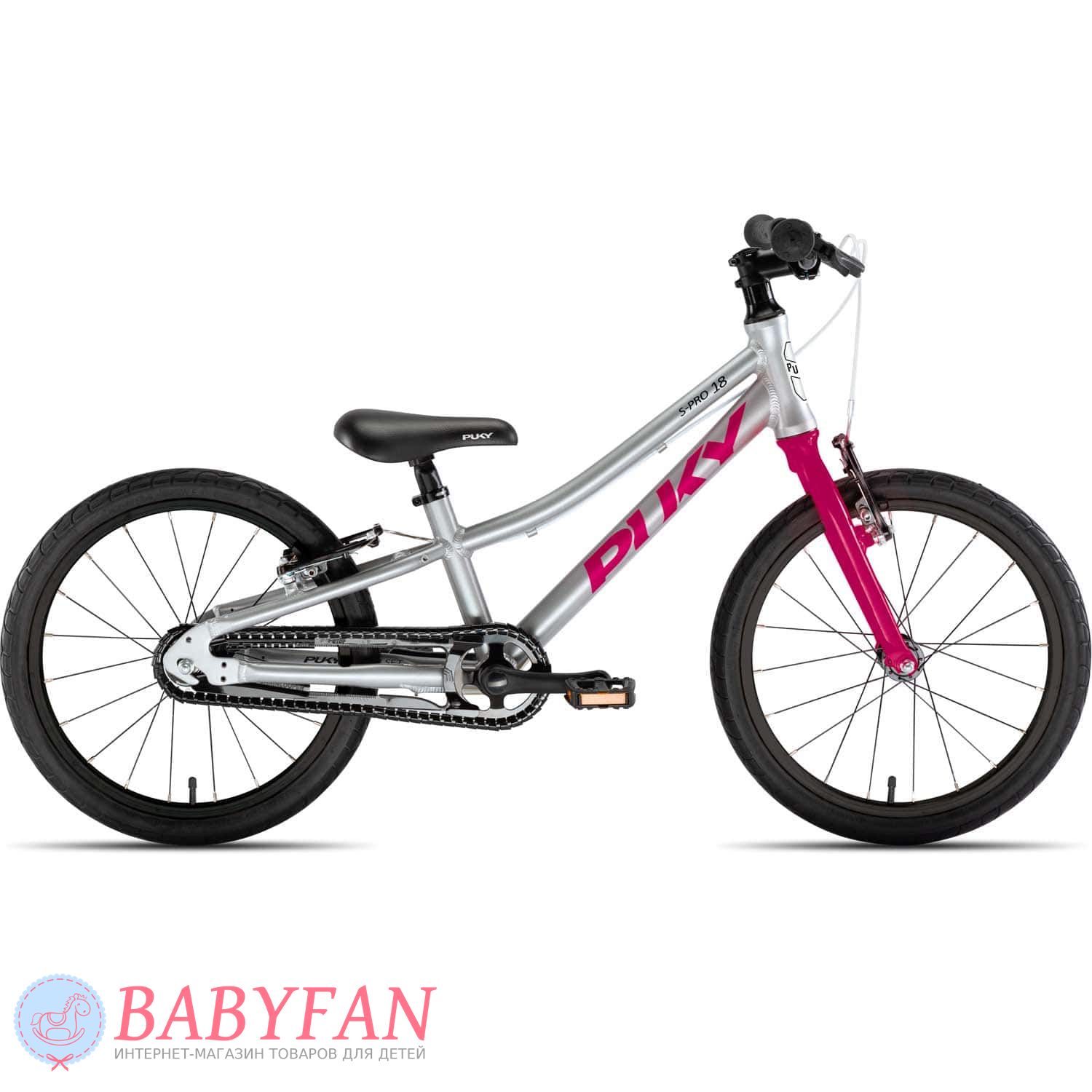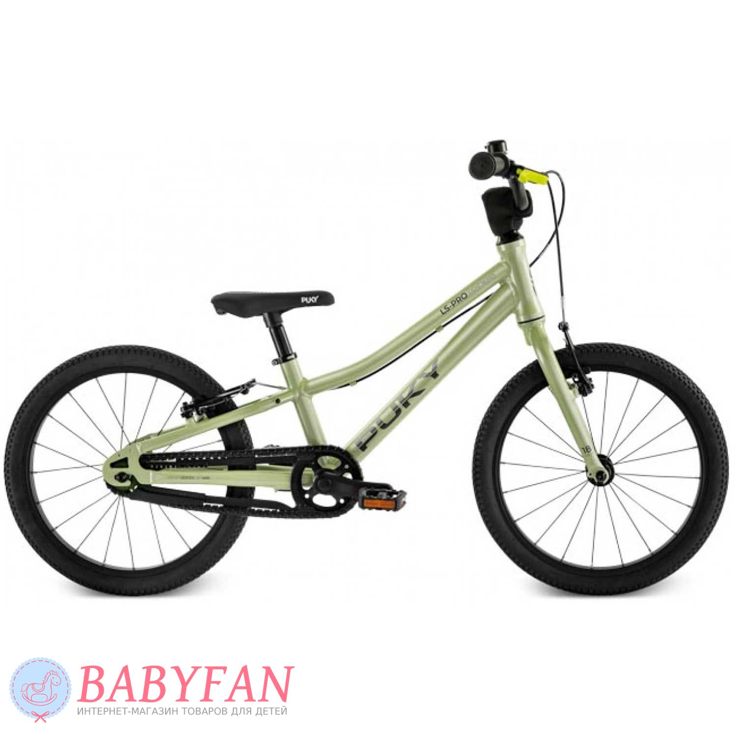 Puky LS-PRO 18 – німецький двоколісний велосипед із низькою посадкою для дітей старше 4 років зростом від 105 до 120 см та вагою до 60 кг. Рама, вилка, рукоятка, опора сідла та кривошипи виготовлені з алюмінію. Рама та вилка покриті порошковою фарбою, стійкою до появи подряпин та сколів. Надувні колеса, на алюмінієвих ободах, з гумовими покришками з протектором. Рульова колонка та сідло регулюються по висоті. Гальма ручні, механічні, обідні, V-brake. Велосипед відповідає суворим європейським стандартам і має завужений для дітей Q-фактор 160 мм. Завдяки малому передатному числу велосипед легко стартує.