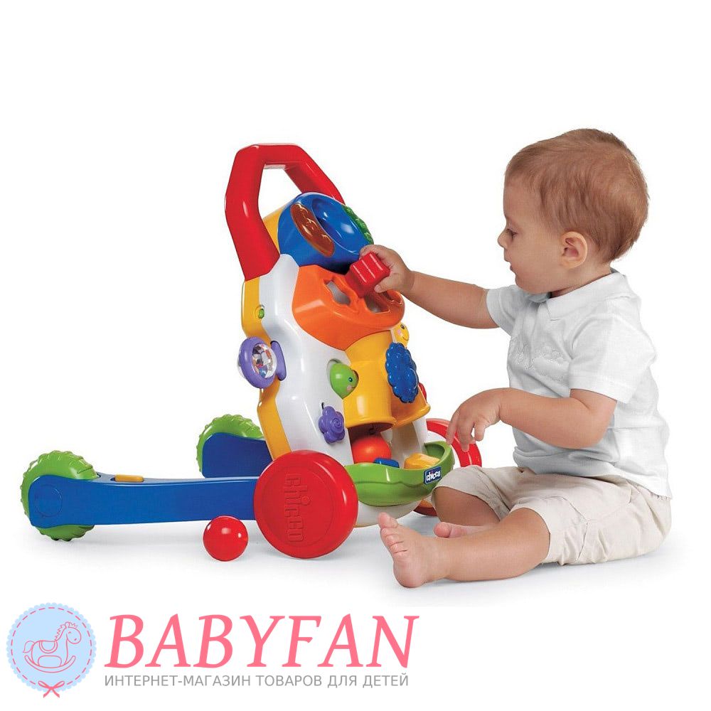 Ходунки - ігровий центр Chicco "Перші кроки" - допоможе дитині стати на ніжки та зробити перші впевнені кроки. Коли малюк починає крокувати іграшка починає грати веселий твіст, який припиняється, як тільки дитина зупиняється, і це спонукає малюка крокувати далі.