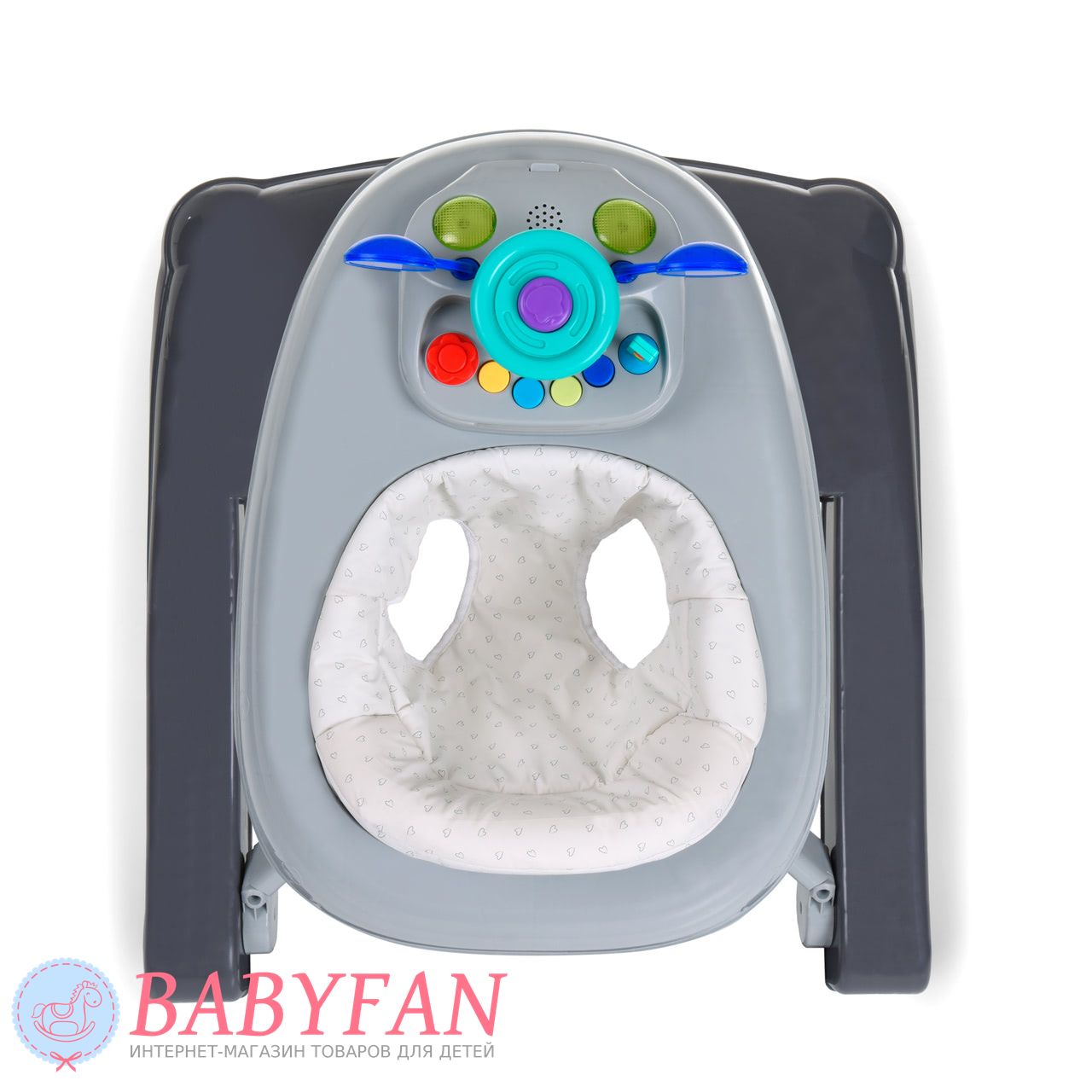 - ігровий центр у ходунках оснащений музичним та світловим модулем (працює від батарейок АА 2 шт, не в комплекті), розвиваючи слух та зір дитини. Численні кнопочки, кермо, ігрові фігурки розвиватимуть дрібну моторику, тренуватимуть пальчики і надовго займатимуть малюка. Веселі дитячі пісеньки розважать малюка, а при необхідності модуль легко витягується, на радість батьків));