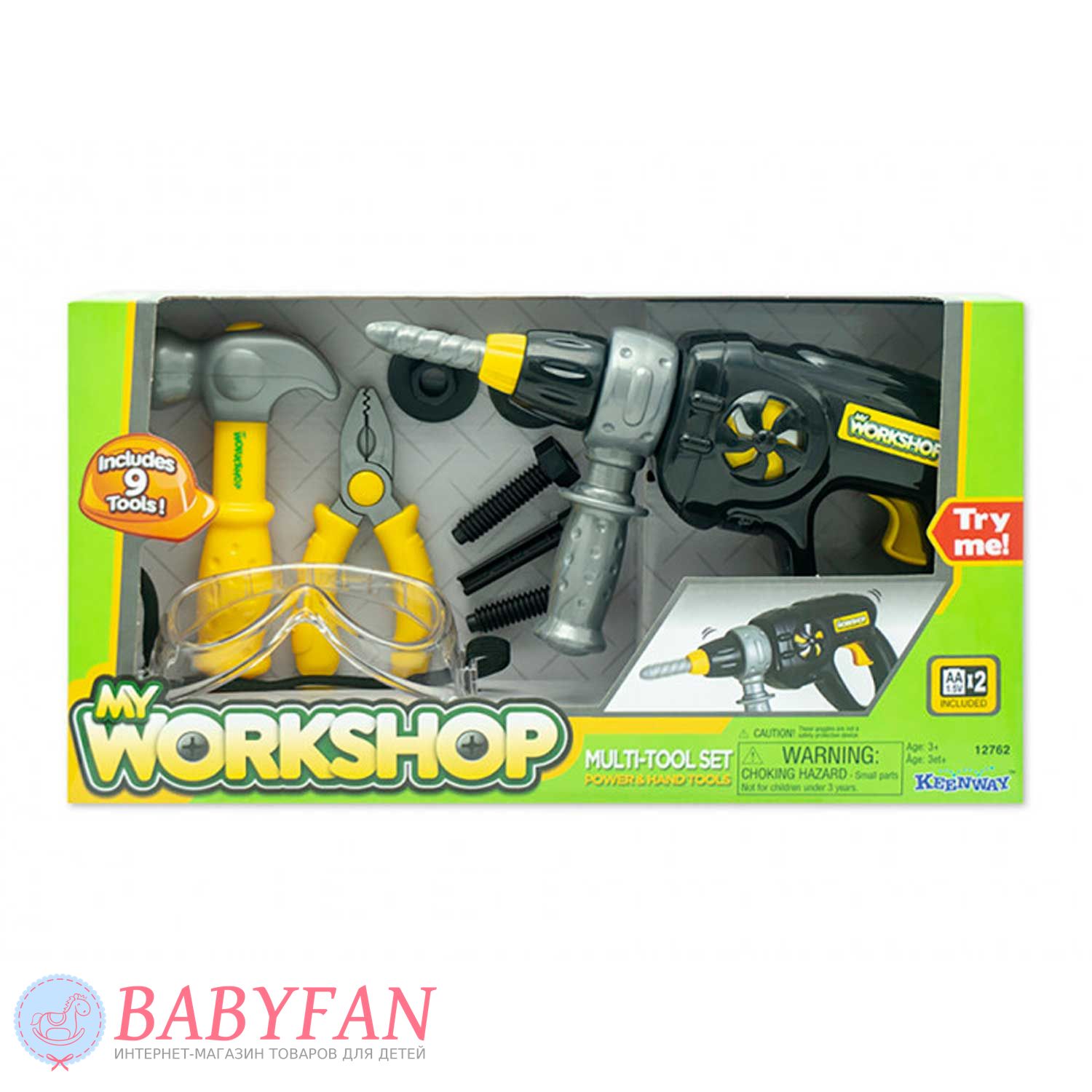 Набір інструментів Keenway K12762 розвиває логічне мислення та дрібну моторику. Вчить розрізняти форму та призначення предметів. Закладає основи техніки безпеки – під час роботи з електричним інструментом необхідно користуватись захисними окулярами. Дриль у наборі електричний, працює від батарейок (у комплекті). Обертання свердла супроводжується відповідним звуком. Свердло рухоме, при натисканні входить в дриль - створюється ефект занурення в деталь, що просвердлюється.