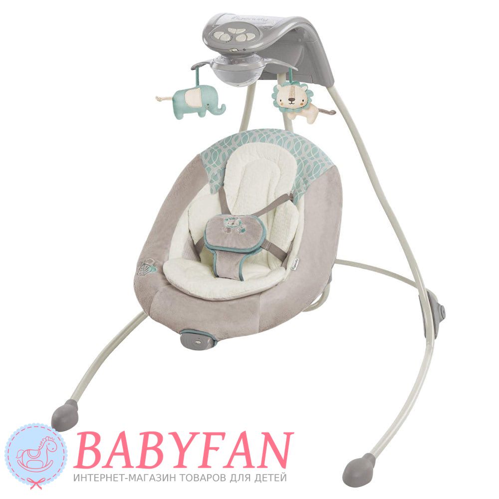 Гойдалки музичні "Слоненя і Левеня" Bright Starts 10258 з колекції InGenuity, що розгойдуються в 3-х напрямках забезпечать малюкові, що відпочиває в ній, максимальна зручність і безпека малюкові, що відпочиває в ній, максимальна зручність і безпека. Особливістю цих гойдалок є використання технологій Comfort ReclineTM, яка надає можливість повністю відкидати спинку крісла, перетворюючи його на подобу гамака; TrueSpeedTM, яка змінює швидкість заколисування в залежності від ваги дитини, що змінюється, HybridriveTM, яка економить ресурс двигуна і береже витрату батарейок; Whisper QuietTM, яка забезпечує безшумну роботу гойдалок. Модель "Комфорт та гармонія" Bright Starts надійно утримає малюка під час неспання 5-точковим ременем безпеки. Рекомендуємо для використання з перших місяців життя дитини.