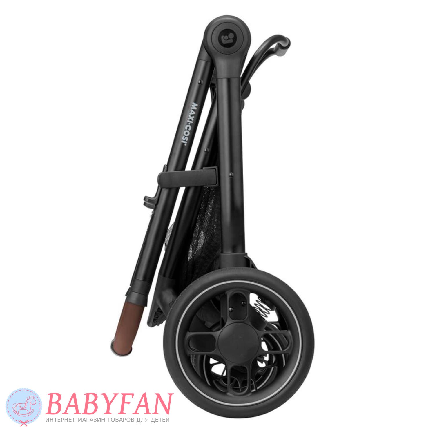 - коляска складається з сидінням за типом «книжка», встановленим по ходу руху (тільки у такому варіанті). У складеному вигляді конструкція стоїть у вертикальній площині без сторонньої підтримки. Передбачено затискач, що виключає мимовільне розкладання шасі;