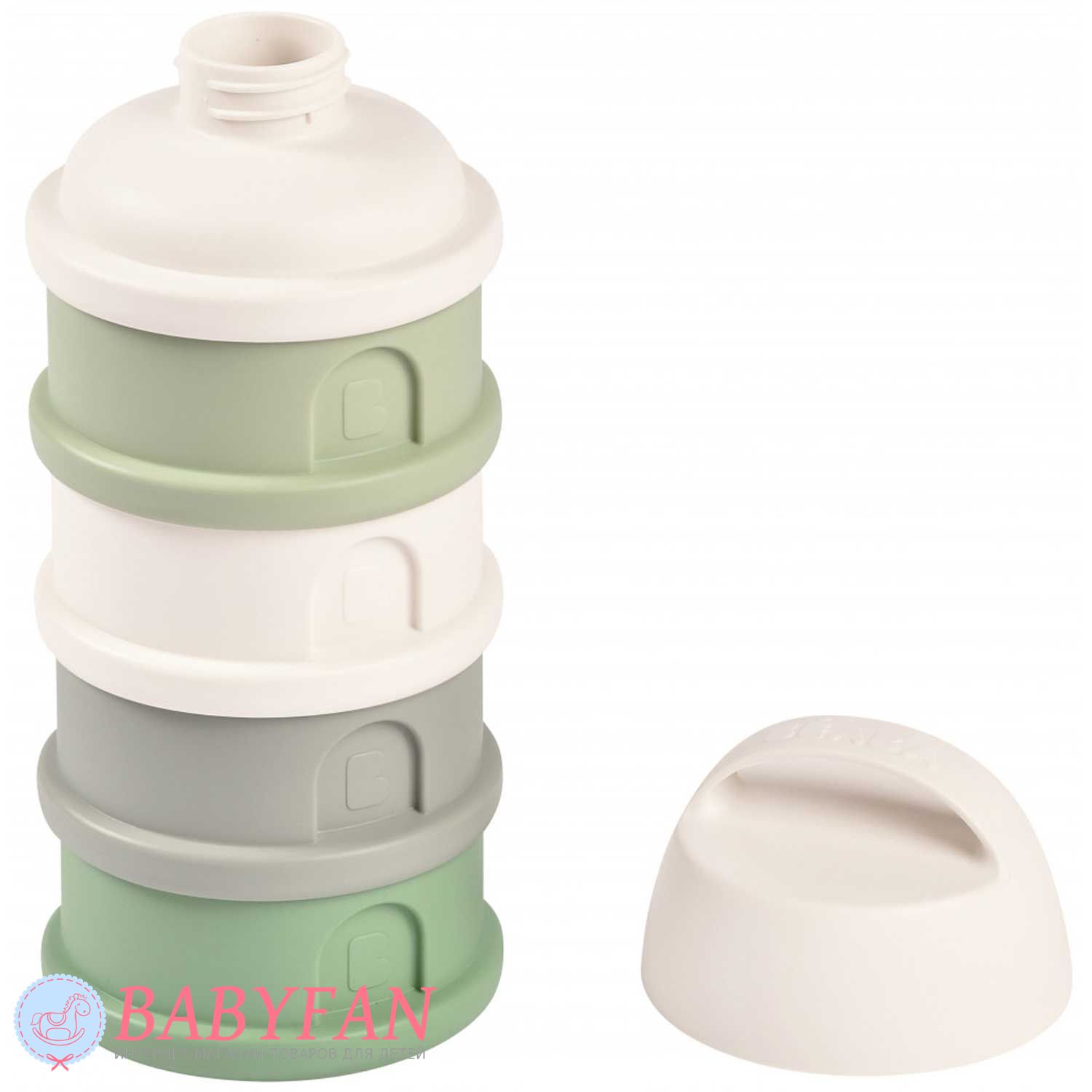 Контейнер для сипких сумішей Beaba – дозволяє розмістити 4 попередньо відміряні порції сухого молока у різних відділеннях або інші подрібнені продукти. Оптимальний обсяг одного відсіку (вміщує 11 доз, 330мл).