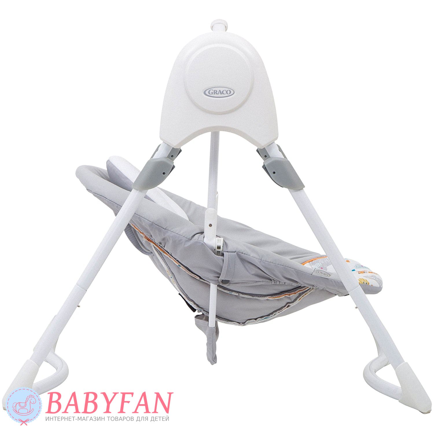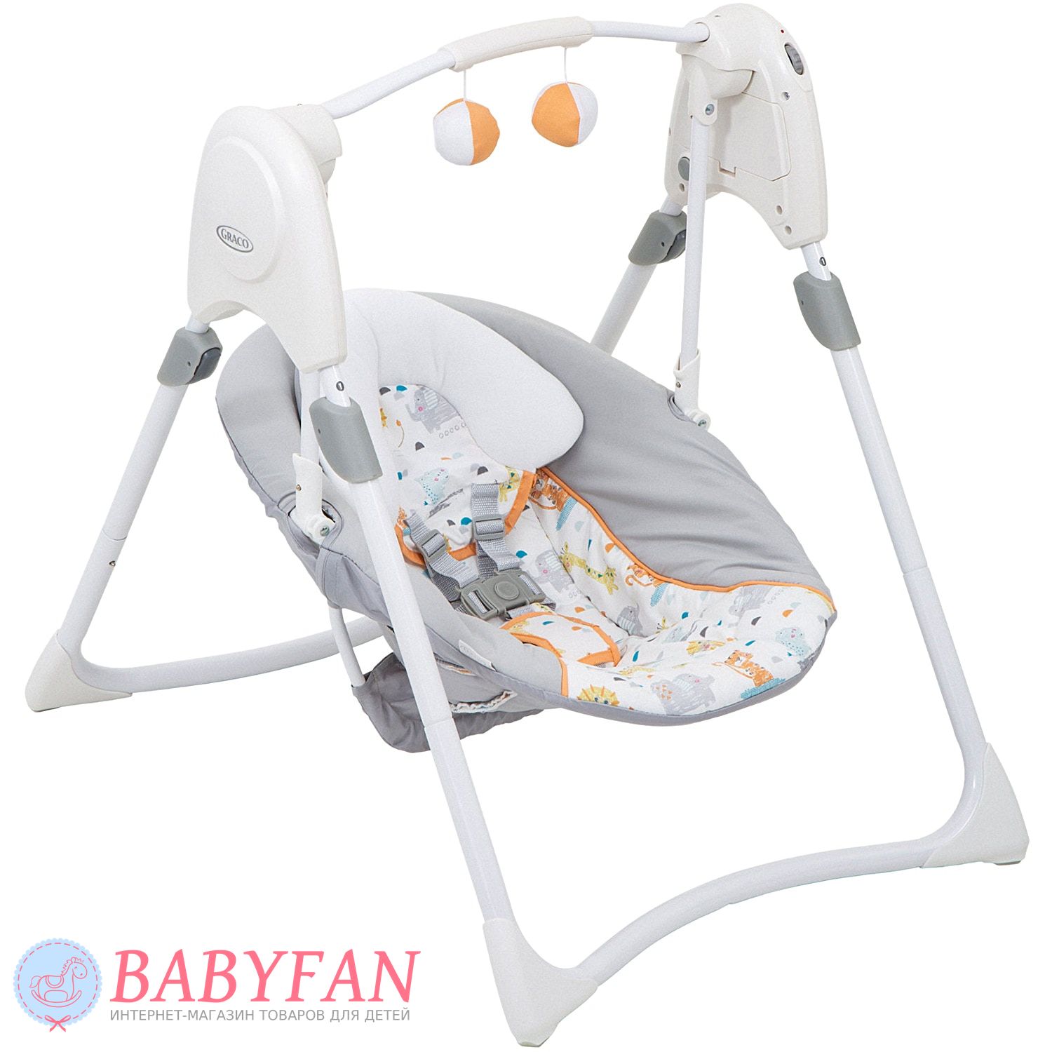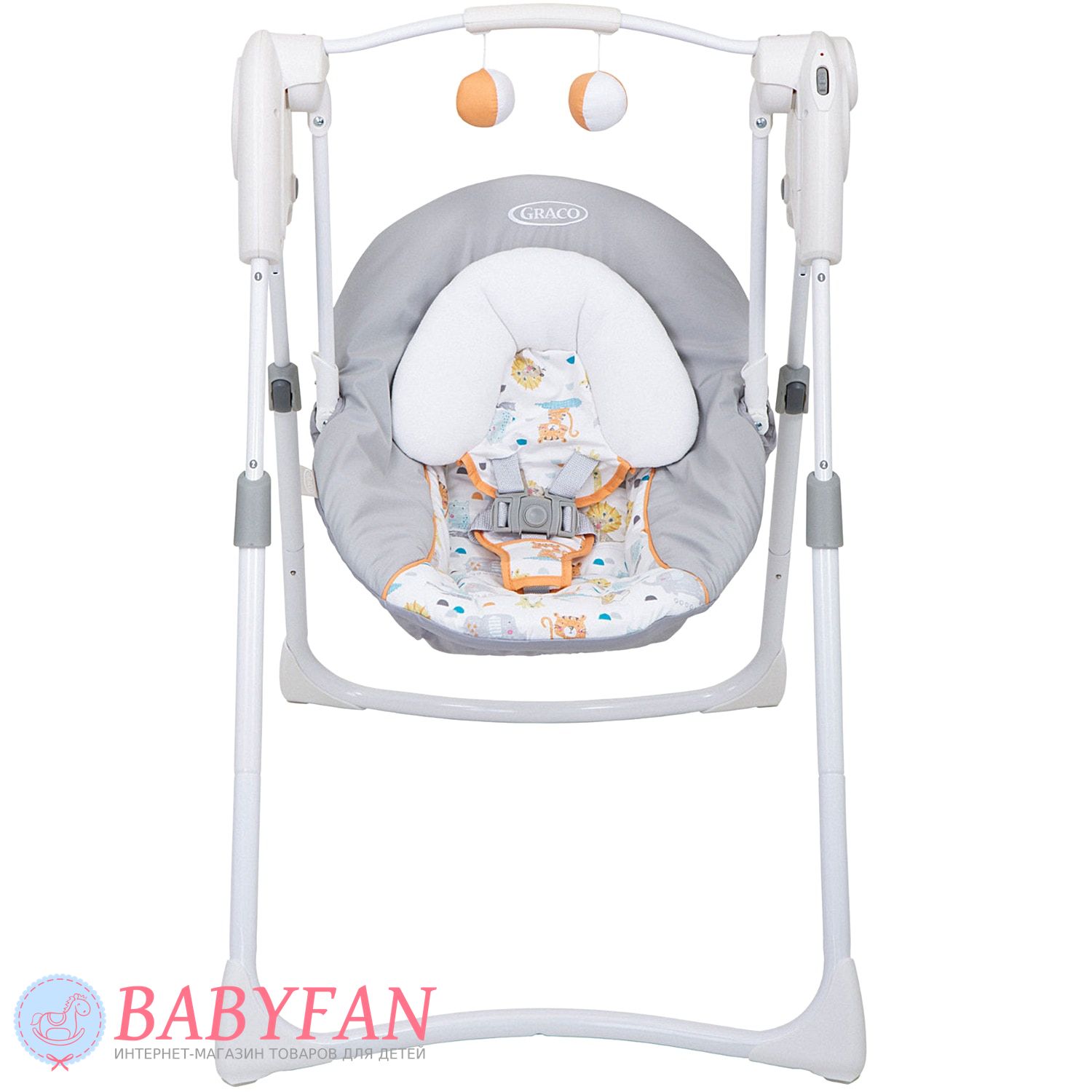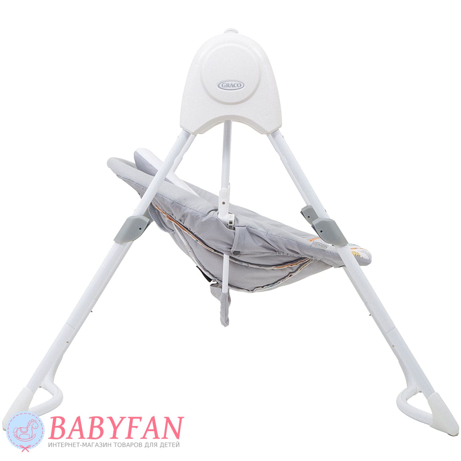 Крісло-гойдалка Graco Slim Spaces – компактна модель крісла-гойдалки, що займає мало місця як під час експлуатації, так і зберігання завдяки дуже компактному додаванню. Це стійка конструкція з регульованими щодо висоти ніжками, регульованою швидкістю гойдання, мобілем зі знімними іграшками та знімною основою-підголовником. Проста в експлуатації модель крісла-гойдалки з гарним функціоналом.