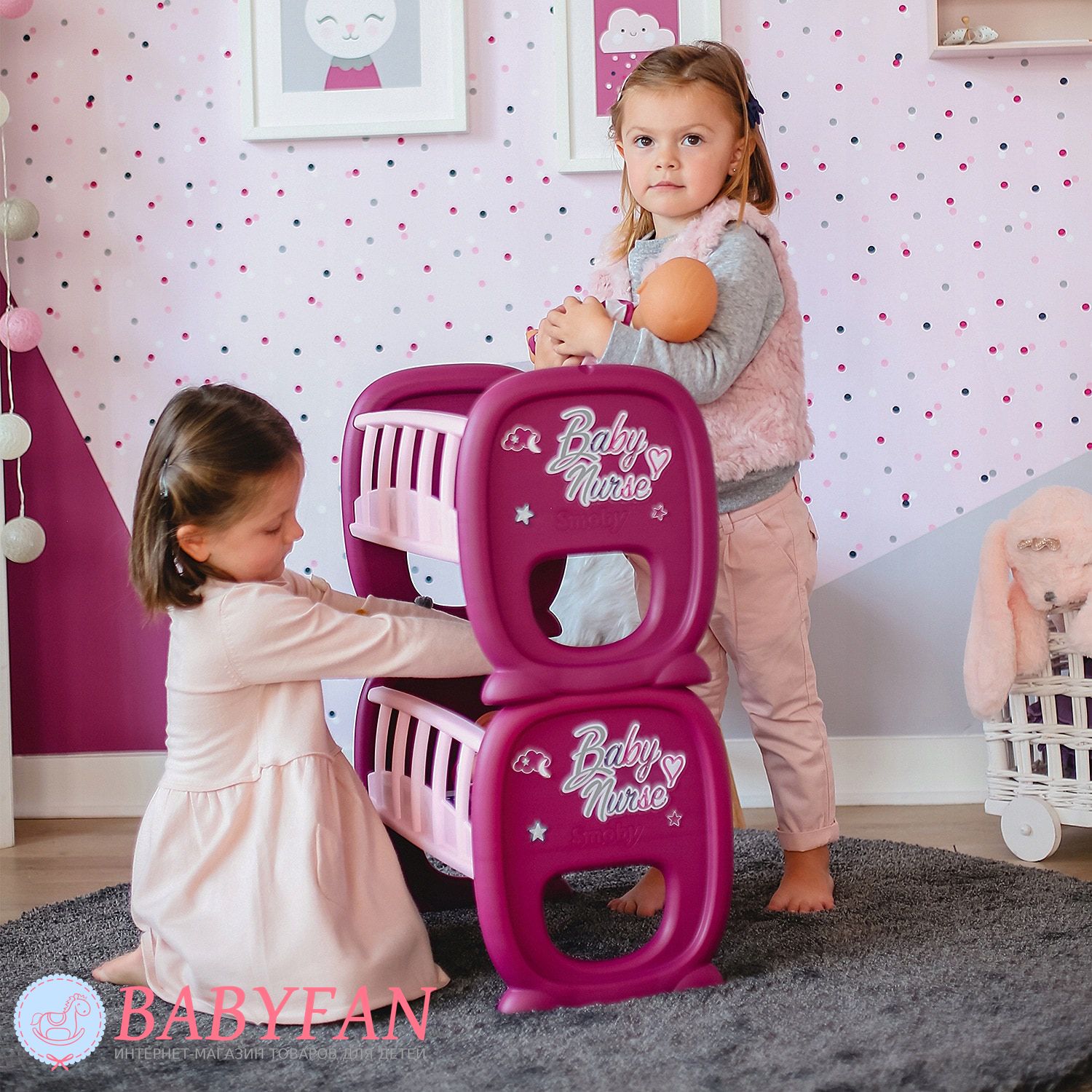 Ліжечко для ляльок близнючок Baby Nurse Smoby 220345 – чудове доповнення іграшкових меблів, що вирішує питання з відпочинком ляльок. Напевно, у майбутніх маленьких мам кілька діток-лялечок, яким слід створити комфортні умови для життя у сюжетно-рольовій грі. Реалістичні колиски для реалістичних ігор.