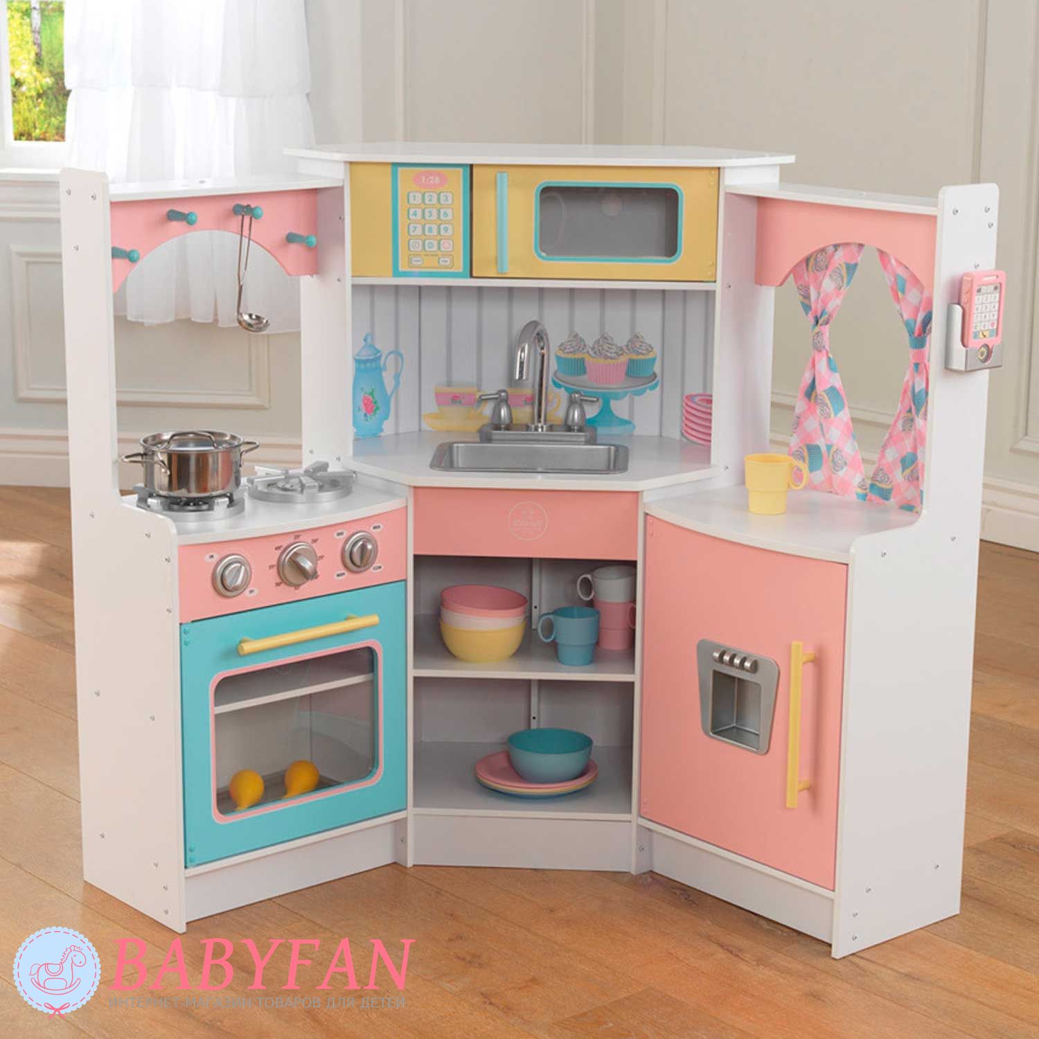 - кутова кухня з функціональним обладнанням підходить для одночасної гри кількох юних шеф-кухарів, які, крім удосконалення кулінарних навичок, навчатимуться взаємин у колективі;