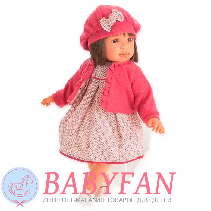 Лялька Аделіна у червоному 55 см, Antonio Juan 1824 – лялька з чарівним дитячим обличчям. Виразні очі обрамлені довгими віями. Густе шовковисте волосся легко розчісувати і робити різні зачіски. Лялька одягнена в чудове вбрання, створене іспанським дизайнером.