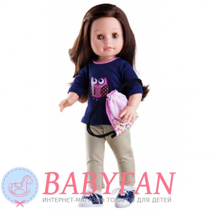 Лялька Емілі в штанах 40 см, Paola Reina 06010 – великі виразні очі, пухнасті вії, волосся густе, немов справжнє, його можна розчісувати і створювати модні зачіски.