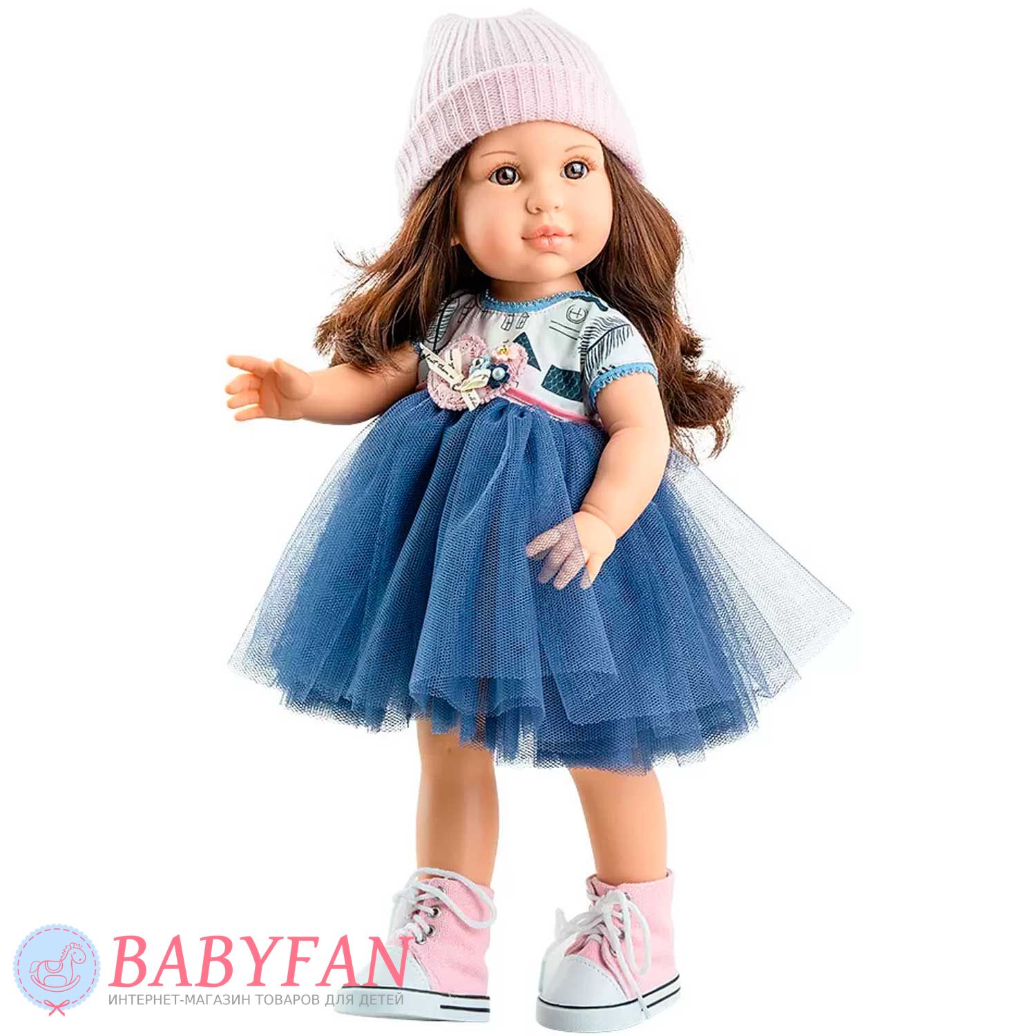 Лялька Ешлі 42 см, Paola Reina 06031 – чудова лялька від майстрів іспанського бренду Paola Reina зачаровує своїм неповторним дизайном обличчя, шикарним волоссям та деталями ручної роботи – вії, ластовиння, щічки та пухкі губки! На ній яскрава сукня з пишною спідницею, шапочка та стильні рожеві кеди.