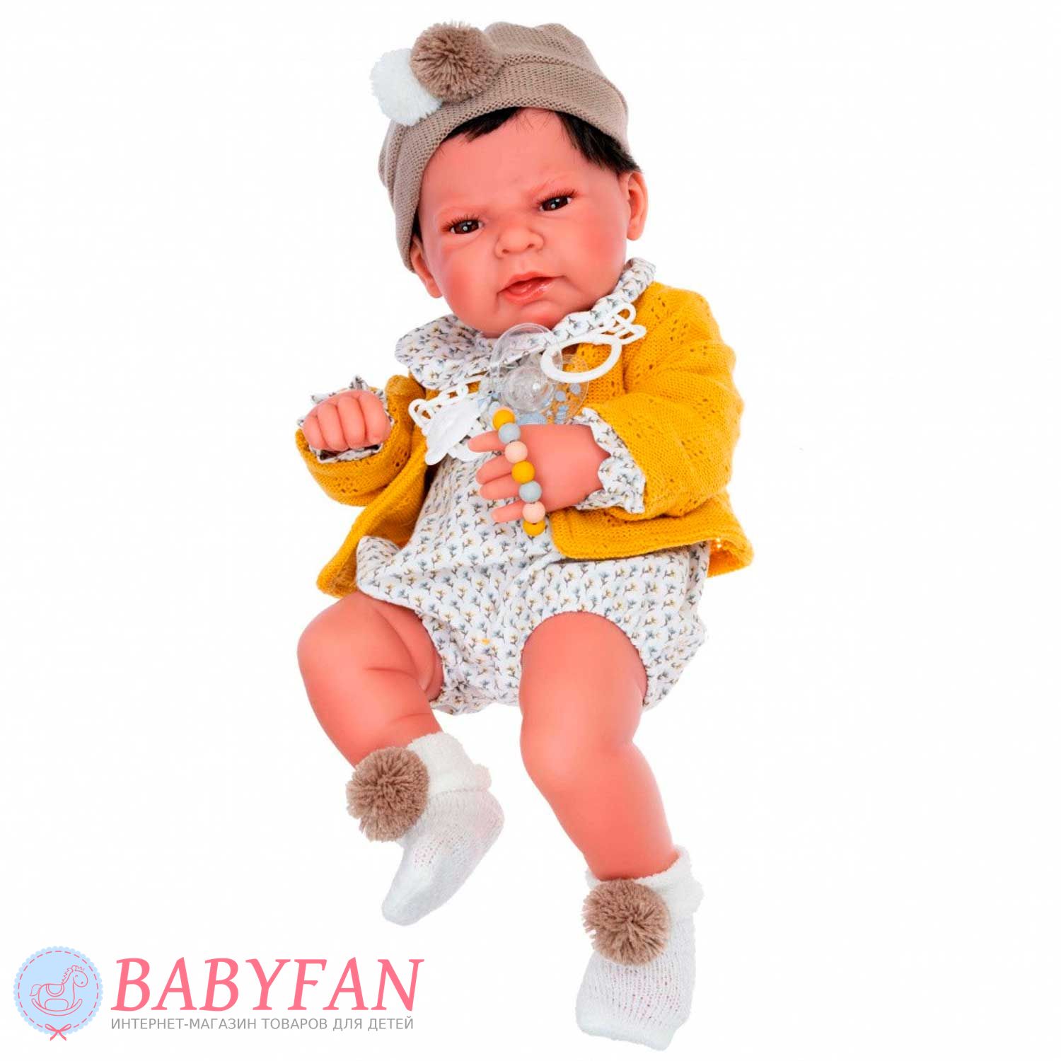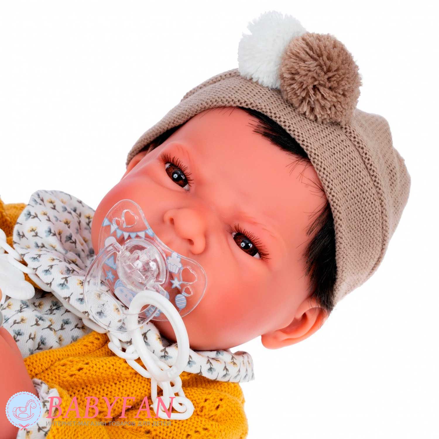Лялька немовля Еліс у жовтому 42 см, Antonio Juan 5075 – миловидний пупс, максимально наближений на вигляд до справжнього немовляти. Крихітка-синочок з пустушкою для реалістичних сюжетно-рольових ігор. У його виразні очі, пухкі щічки, чуттєвий рот неможливо не закохатися. Це безпрограшний варіант сюрпризу для дівчаток.