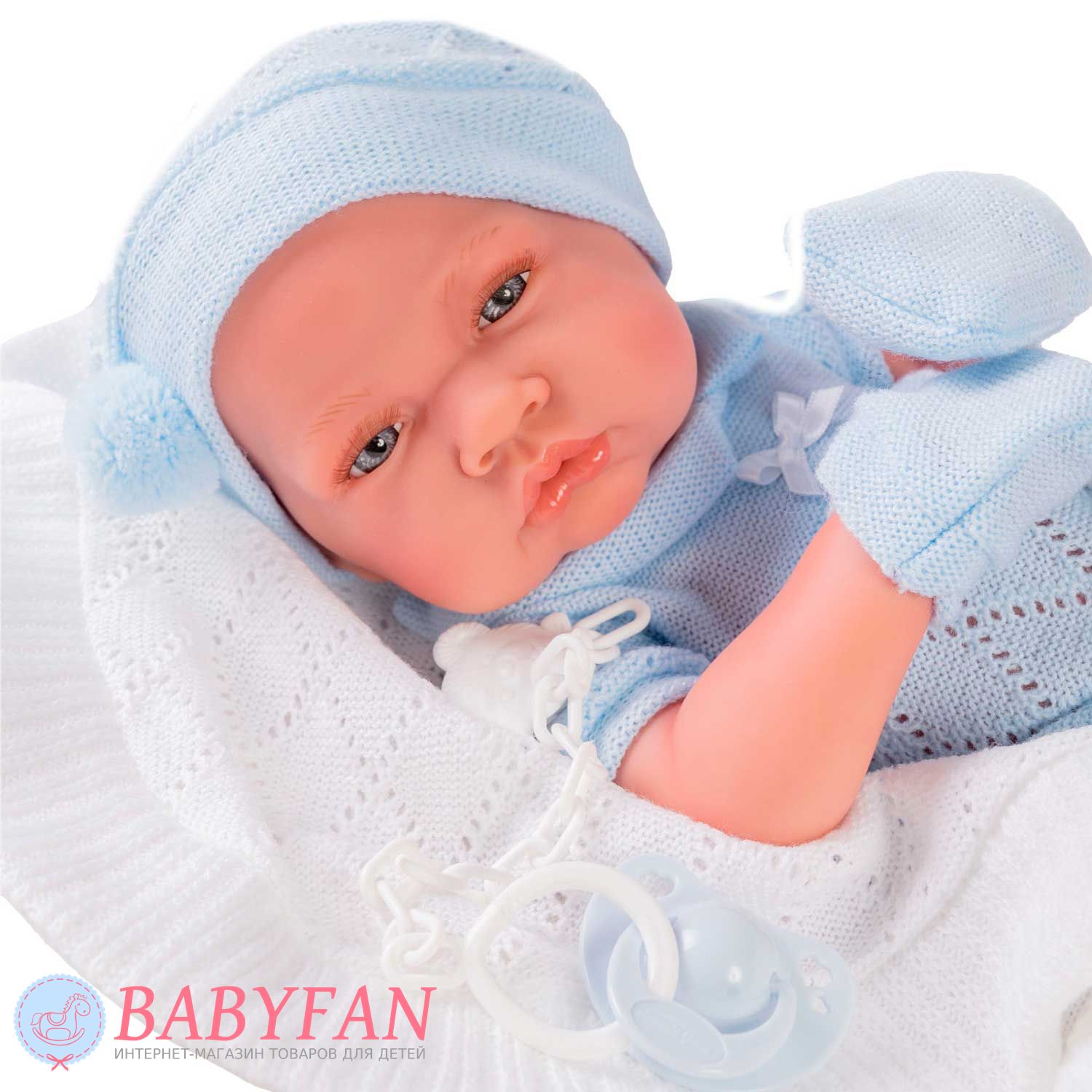 Лялька немовля Тоні в блакитному 42 см Antonio Juan 5063 – неймовірно реалістичний новонароджений хлопчик. Чарівне маля, яке стане улюбленим синочком для будь-якої дівчинки. Одяг, як у новонароджених, конверт, пустушка і анатомічна схожість ляльки зі справжнім немовлям надають реалістичності сюжетним іграм. У майбутніх матусь є можливість попрактикуватися з таким кумедним немовлям під час цікавої гри.