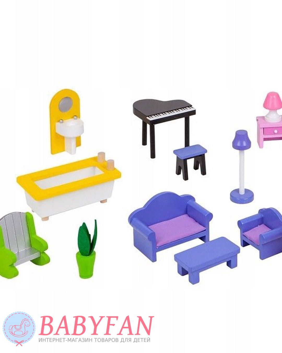 - в комплект також входить набір з 18 великих дерев'яних меблів, які можна легко зняти і перенести без будь-яких обмежень.