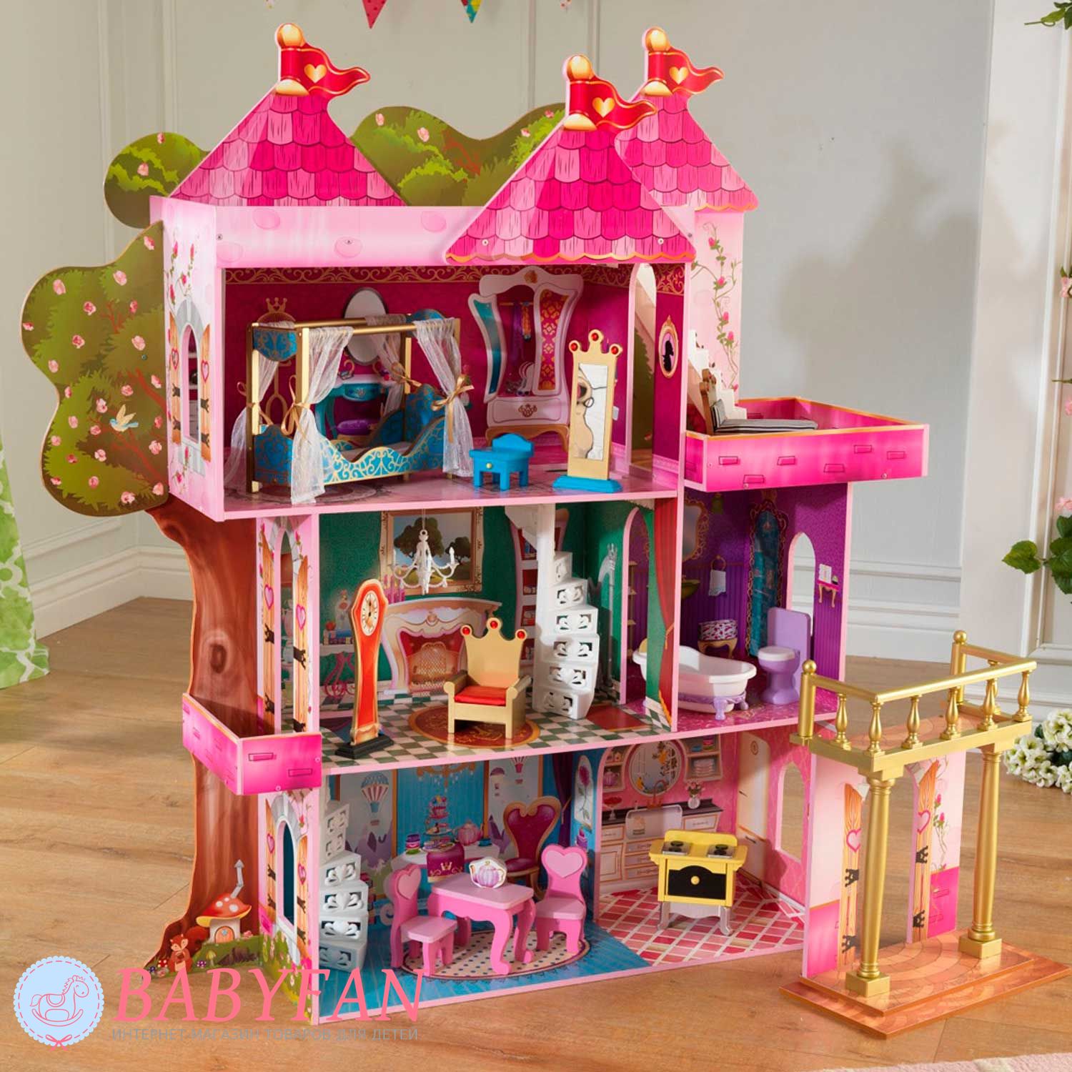 - певний шарм ляльковому будиночку надає дах, виконаний у вигляді веж та дерево на задньому фоні;