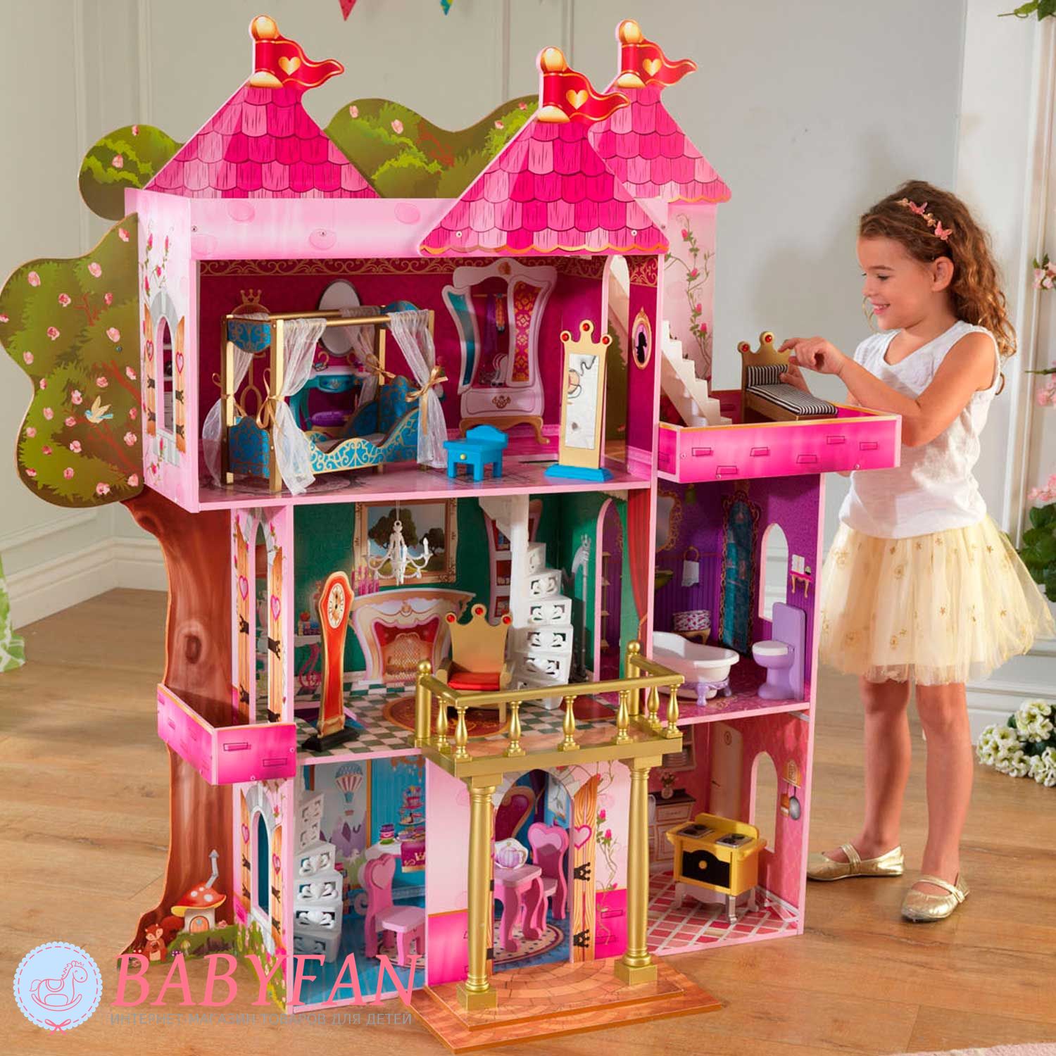 Ляльковий будиночок KidKraft 65878 «Storybook Mansion» - триповерховий іграшковий високий будинок з різноманітним дизайном кімнат. Будиночок доповнюють 14 яскравих аксесуарів, які діти можуть переставляти, створюючи новий інтер'єр та вигадуючи нові сюжети для своїх рольових ігор. Безпечний дерев'яний будиночок, що дозволяє одночасно брати участь у грі декільком дітям.