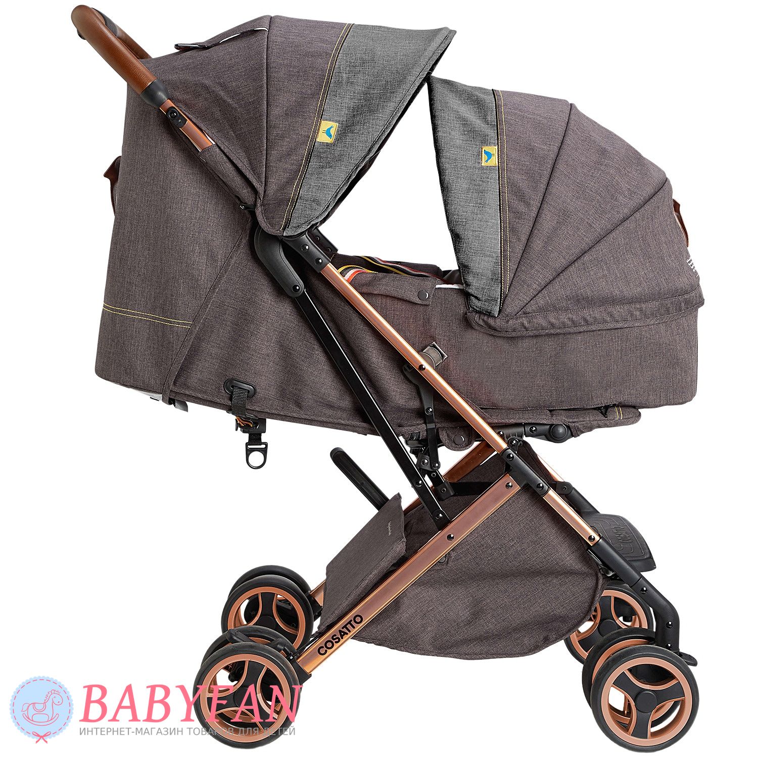 Люлька до коляски Cosatto Woosh XL – для дітей від народження до 9 кг. Вона легко встановлюється на прогулянковий візок Cosatto Woosh XL (для цього треба відкинути спинку коляски в горизонтальне положення і підняти підніжку) і надійно замикається на ній з обох боків.