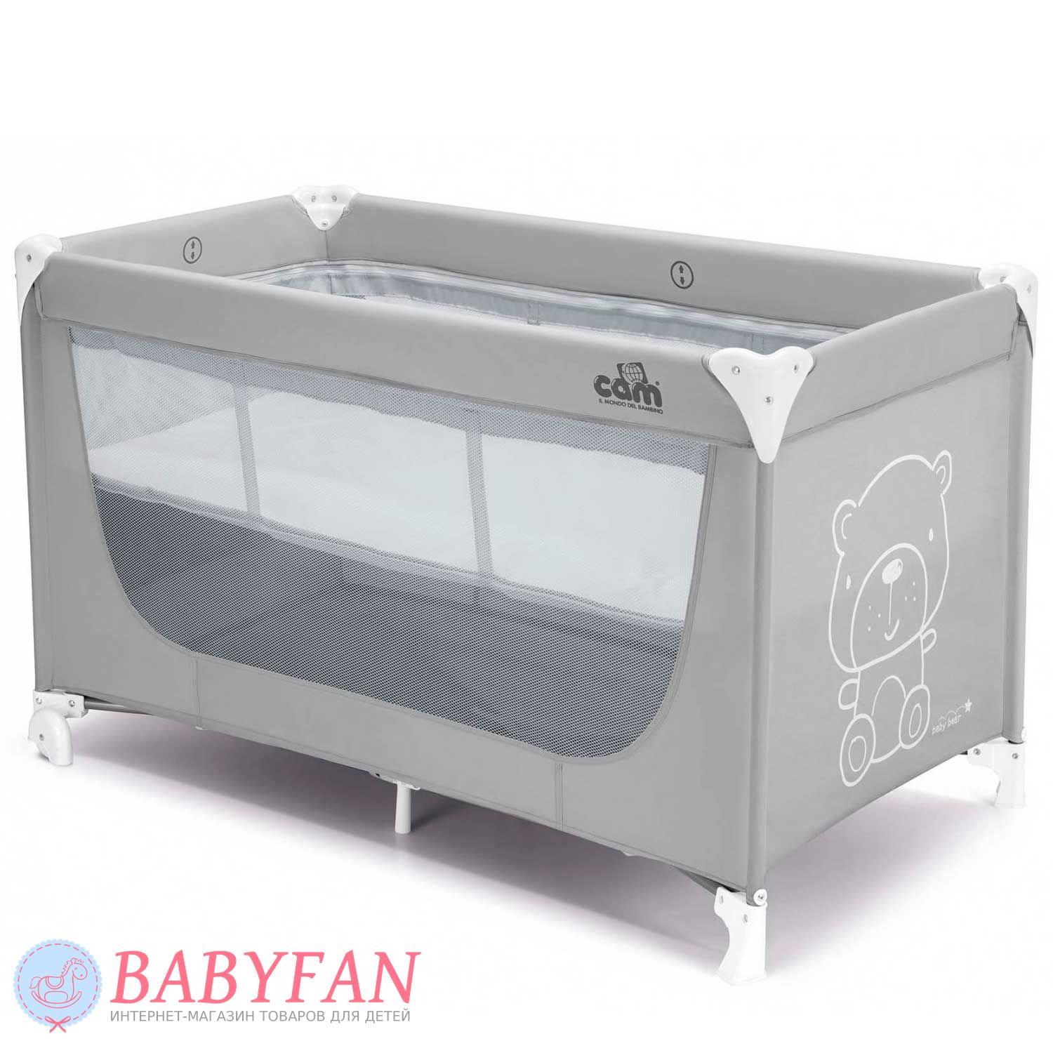 - прозорі бічні стінки Cam Pisolino дозволять спостерігати за діями малюка та забезпечать гарну циркуляцію повітря;