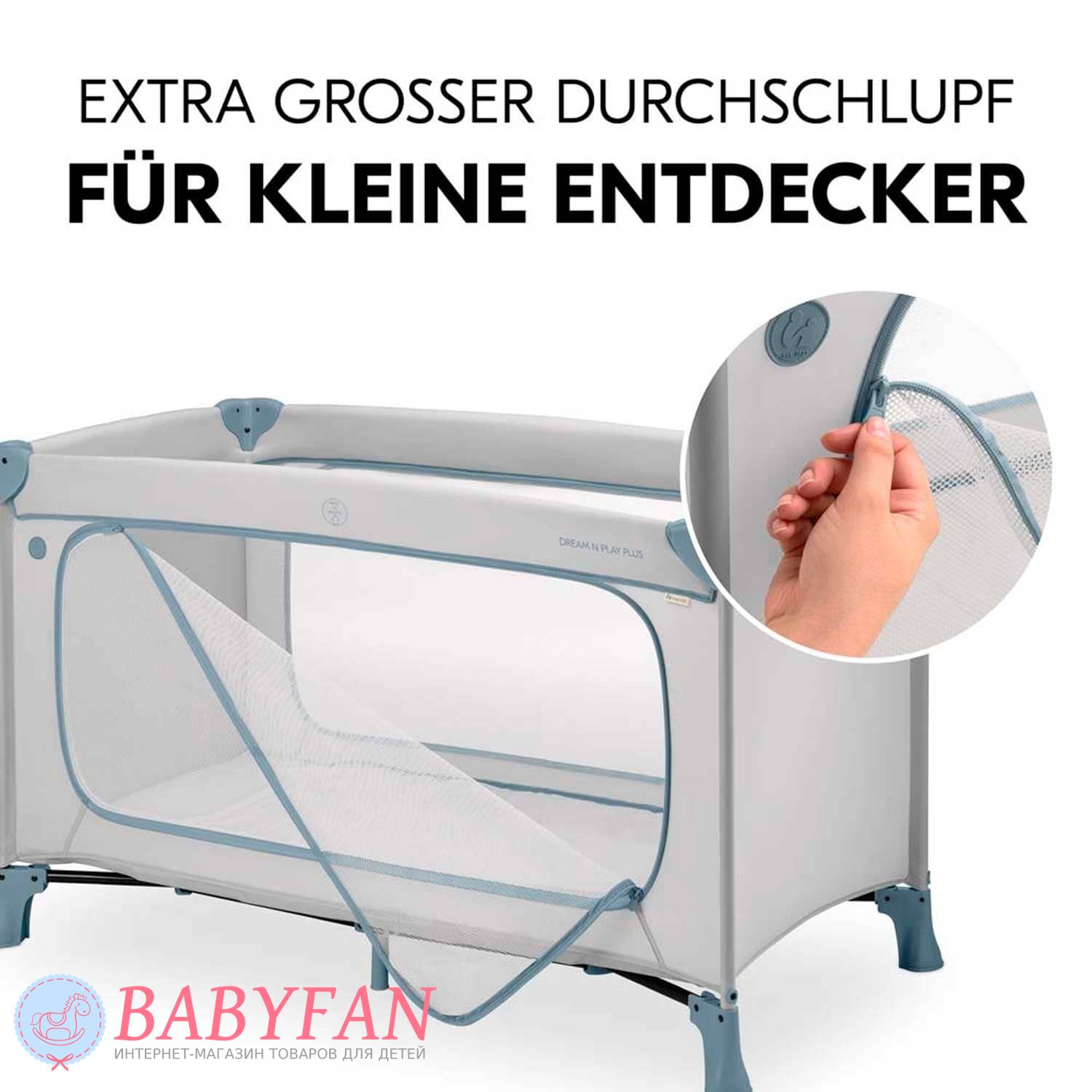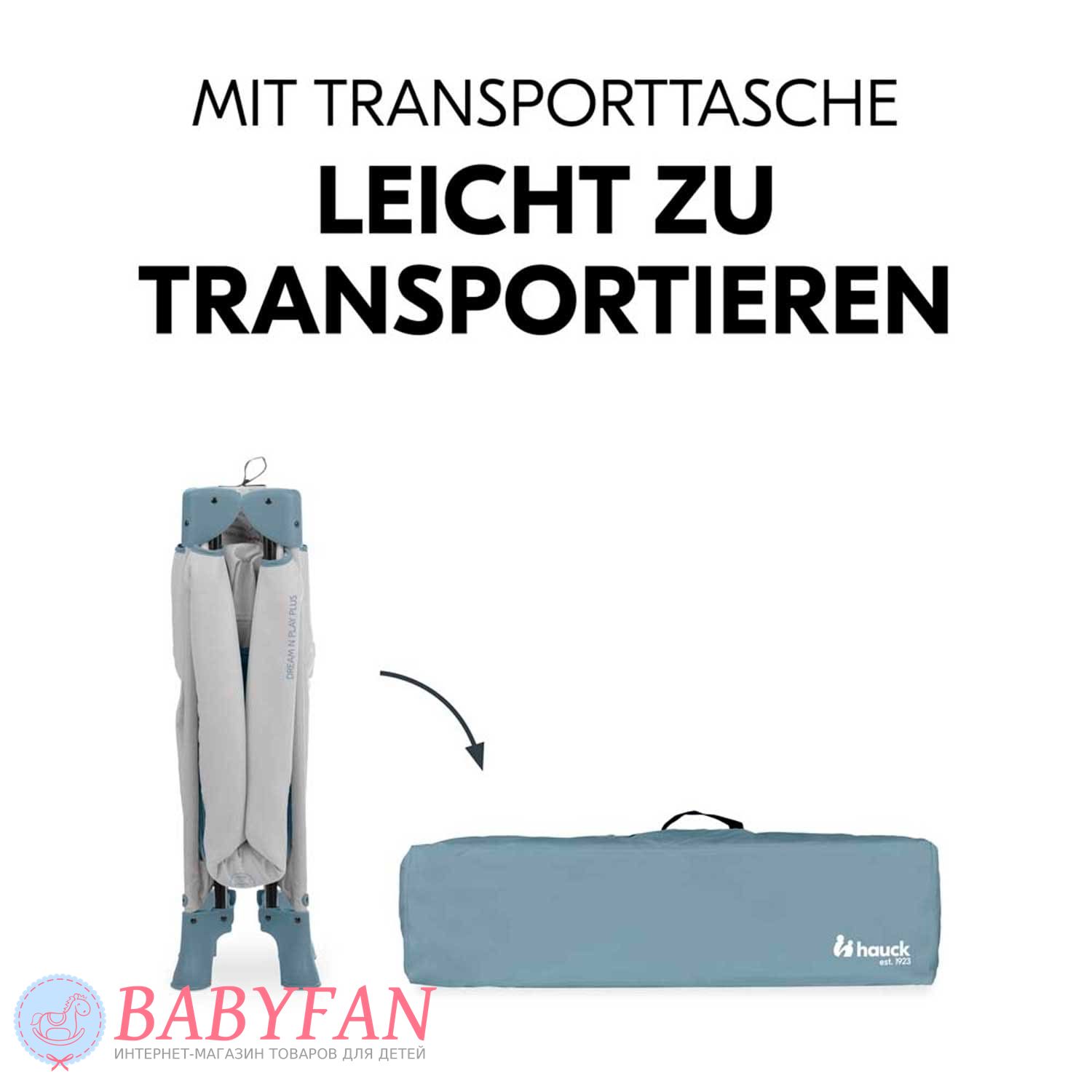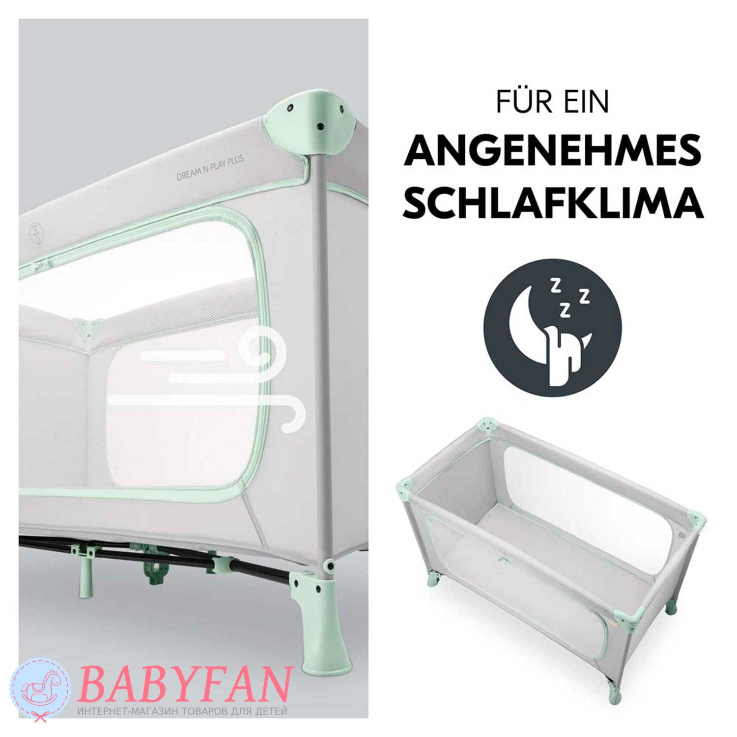 Манеж-ліжко Hauck Dream'n Play Plus - манеж, що служить затишною колискою та безпечною ігровою зоною. Ідеальний для використання в похідних умовах, адже він такий легкий у транспортуванні, простий у розкладці та експлуатації. Також він надає можливість дорослим залишити дитину самої в приміщенні, не хвилюючись про її безпеку, прозорі бічні сторони не дозволять дитині відчути почуття самотності.