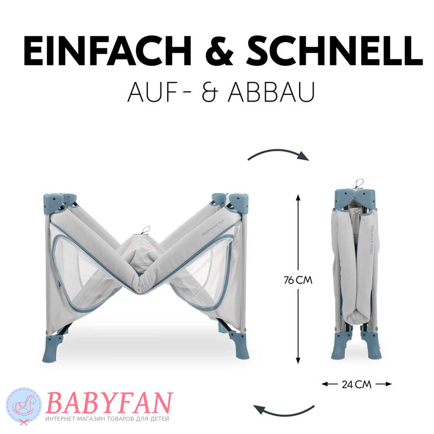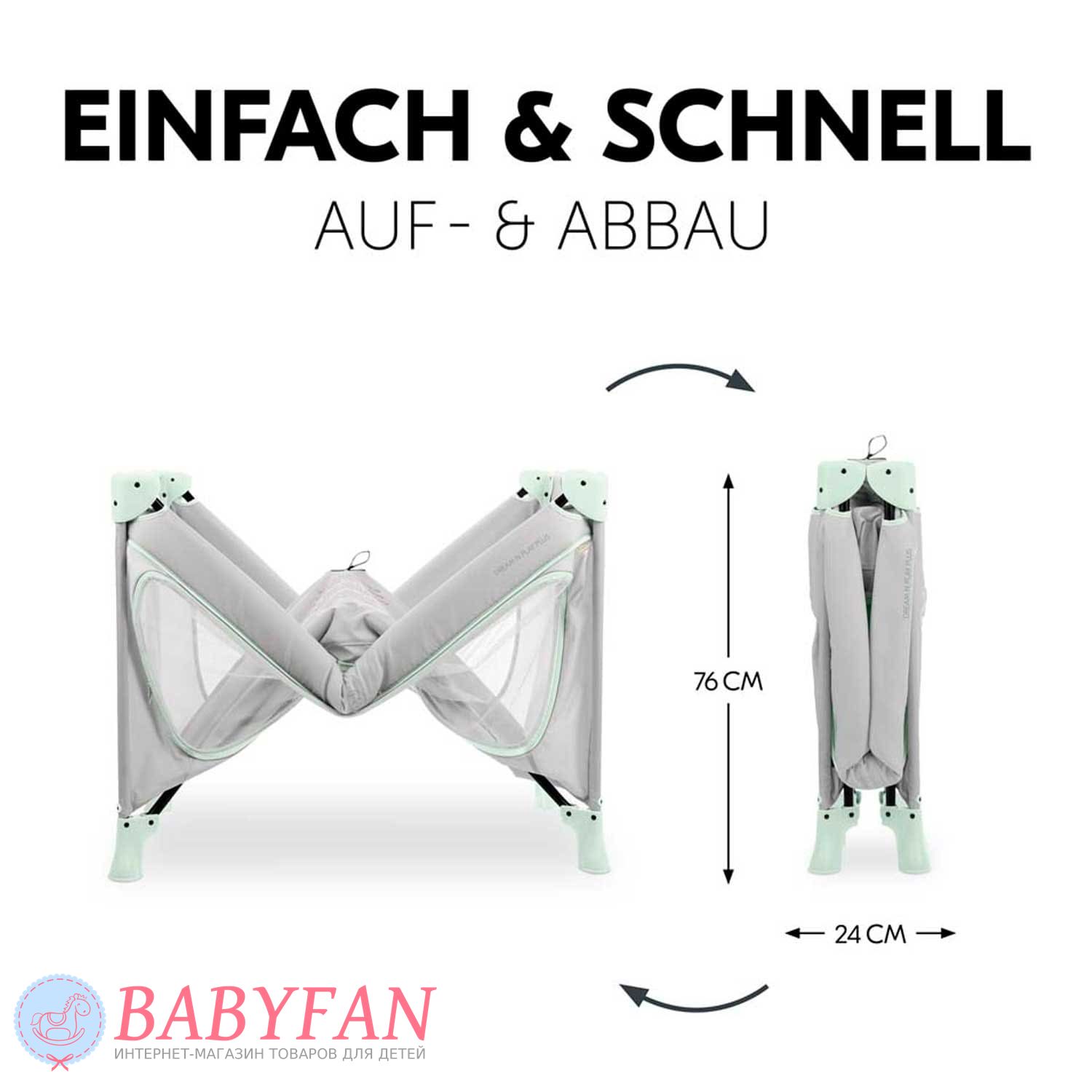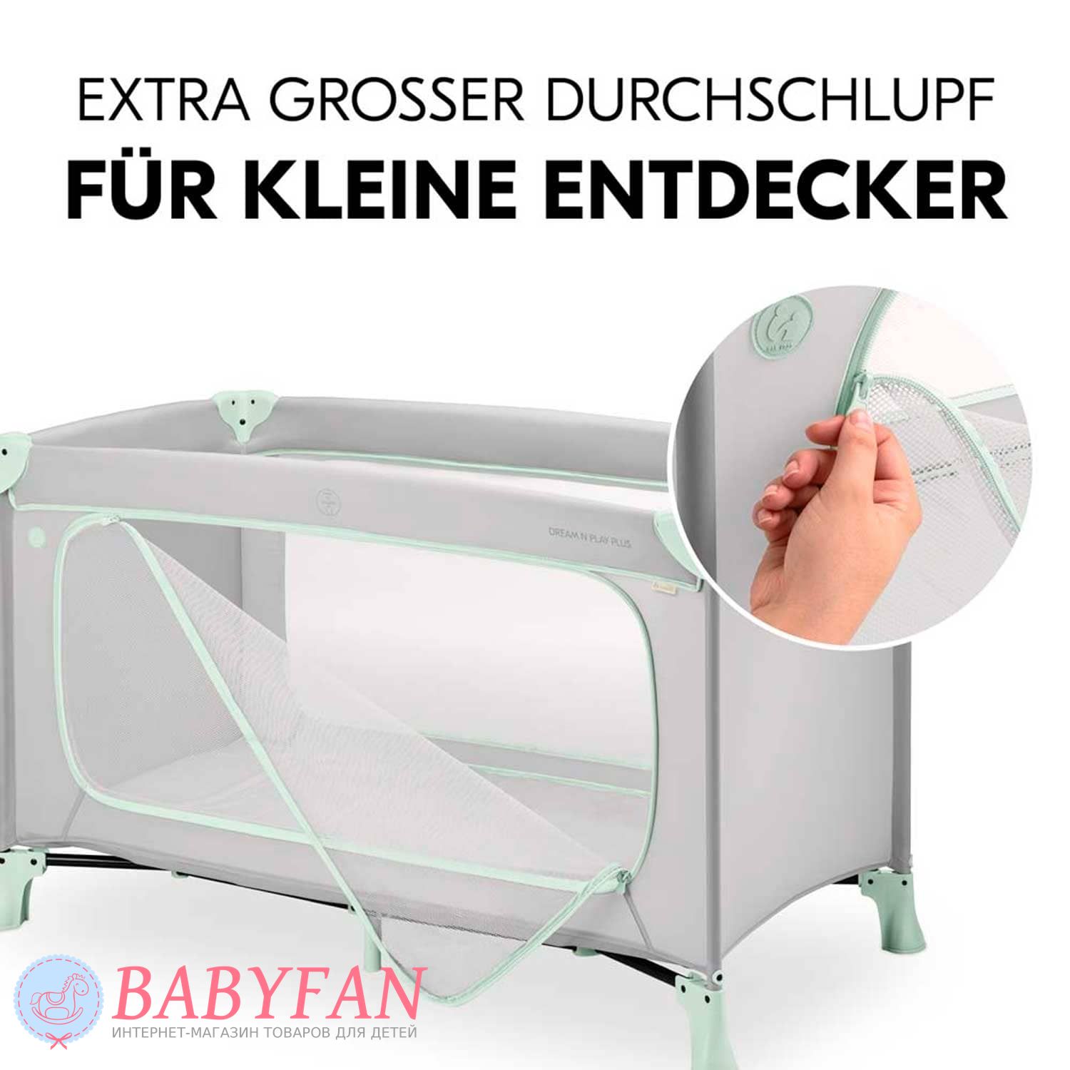 Манеж-ліжко Hauck Dream'n Play Plus - манеж, що служить затишною колискою та безпечною ігровою зоною. Ідеальний для використання в похідних умовах, адже він такий легкий у транспортуванні, простий у розкладці та експлуатації. Також він надає можливість дорослим залишити дитину самої в приміщенні, не хвилюючись про її безпеку, прозорі бічні сторони не дозволять дитині відчути почуття самотності.