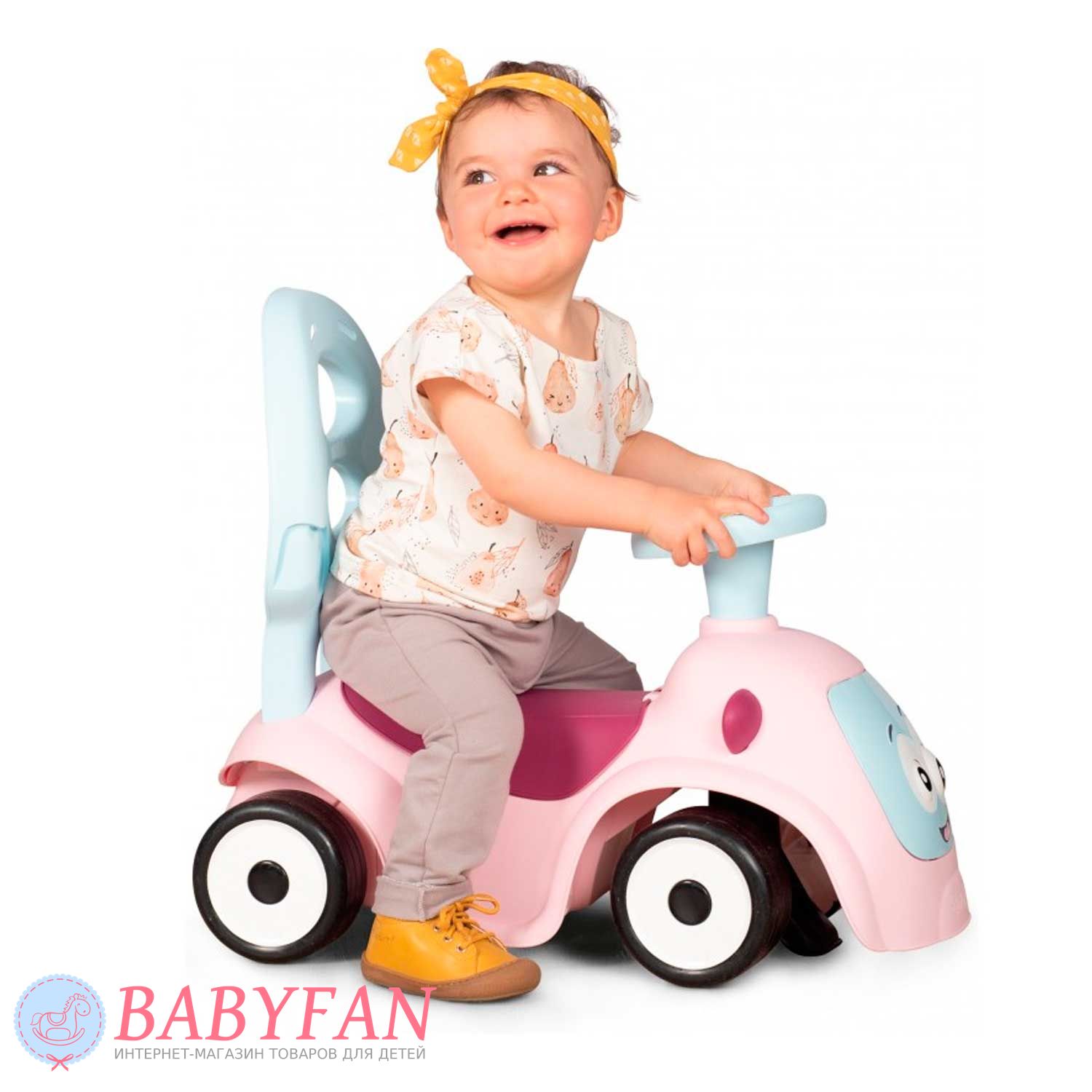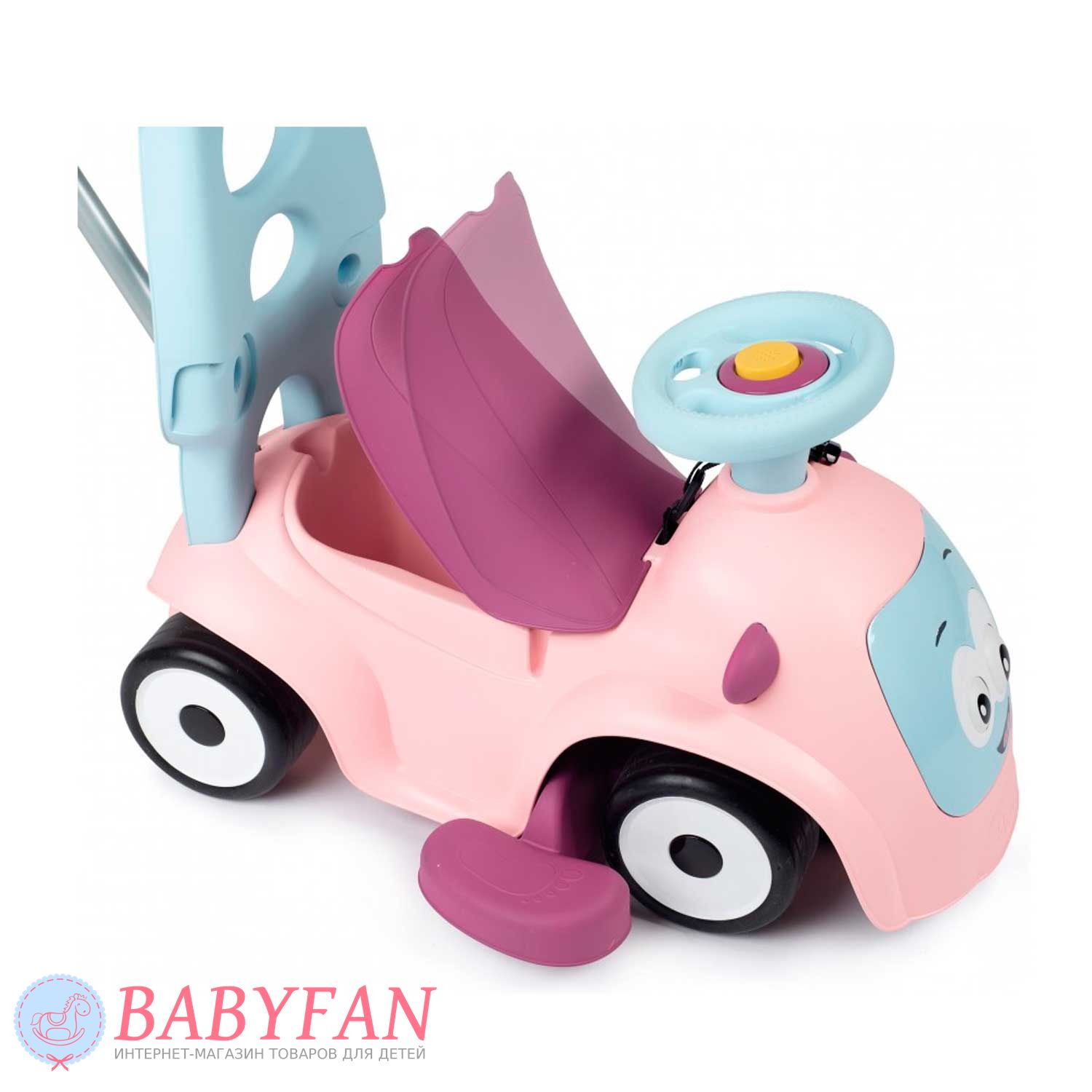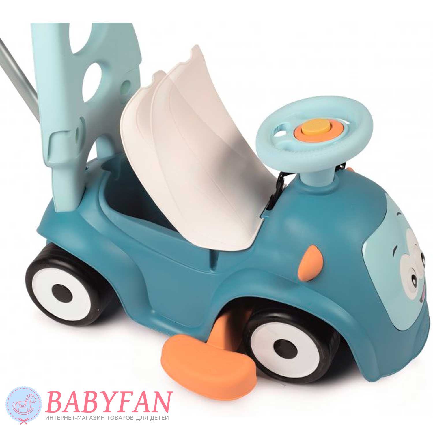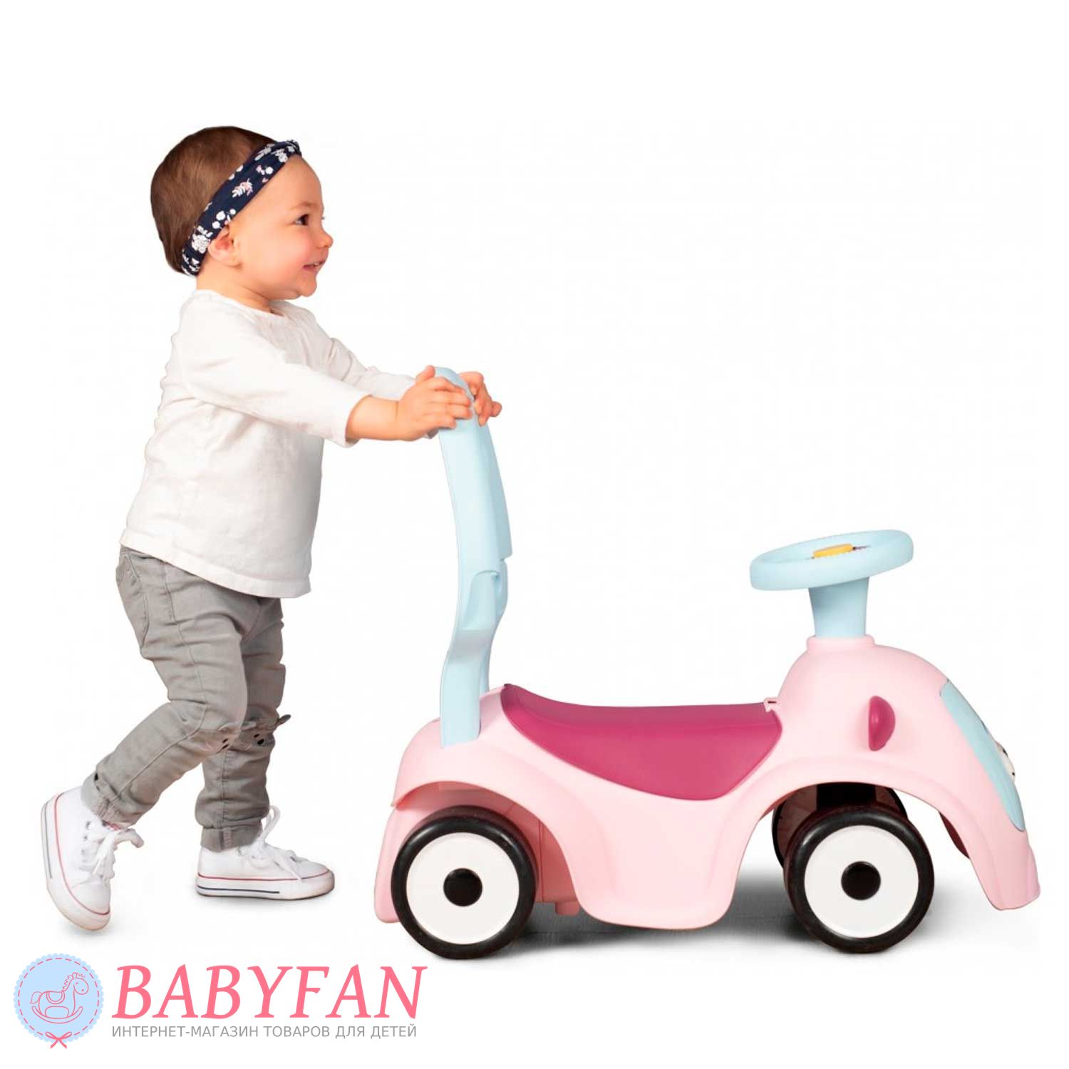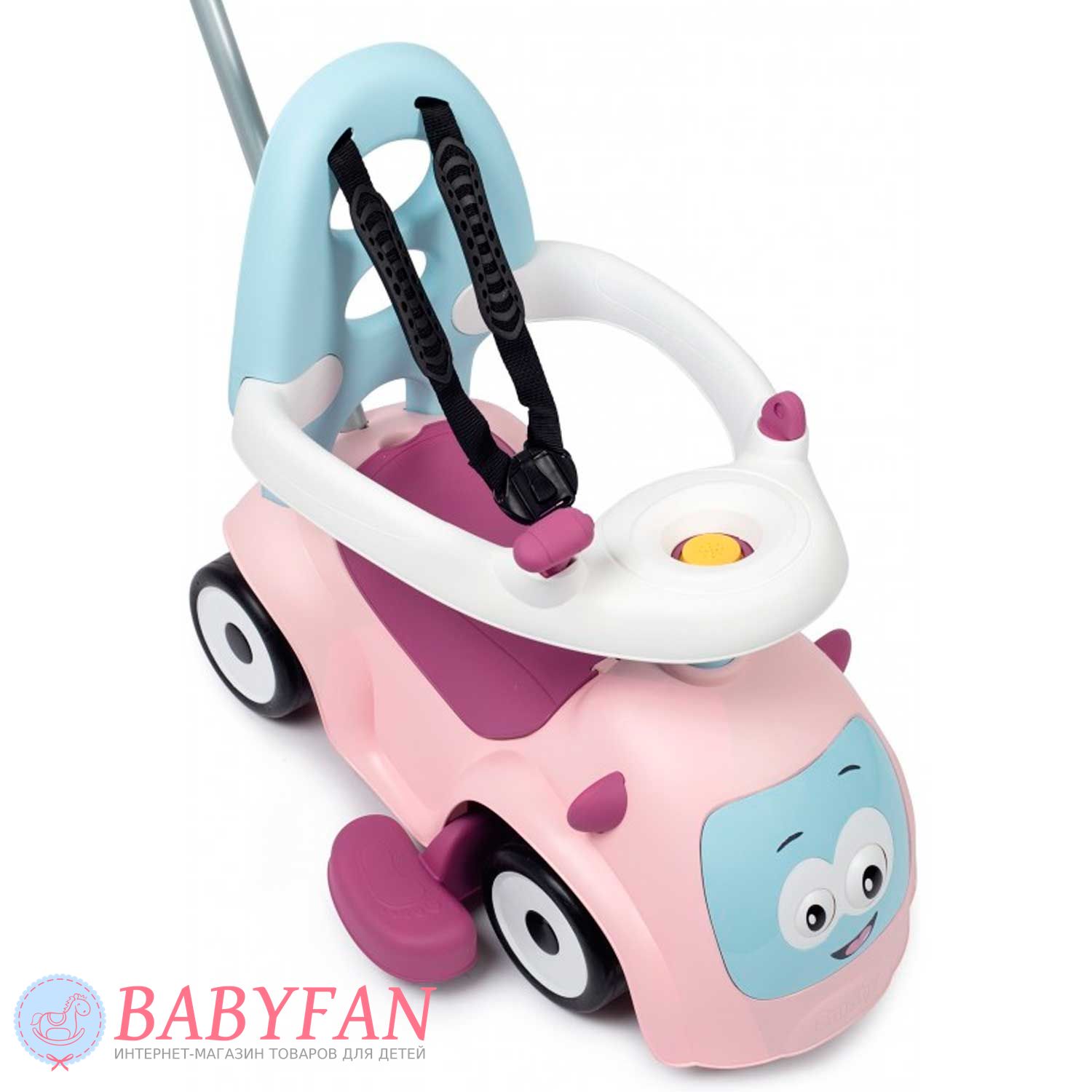 Машинка-каталка Maestro 2 Smoby – призначена для дітей з 6 місяців. Яскрава, барвиста машинка-каталка трансформується і "зростає" відповідно до потреб зростання Вашого малюка: найменші можуть сидіти і грати, а також кататися на вулиці та вдома, завдяки зручній ручці для дорослих, старші малюки – вчитися ходити, спираючись на спинку каталки , А більш дорослі діти - самостійно пересуватися, сидячи на машинці. Кермо обладнане трьома різними сигналами і рухливими очима, що прокручуються, змінюють "емоції". Зручний багажник під сидінням дозволить взяти на прогулянку улюблену іграшку.