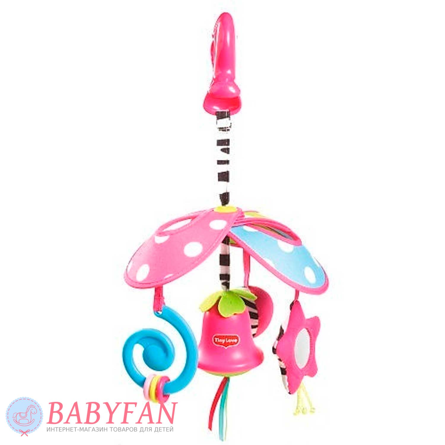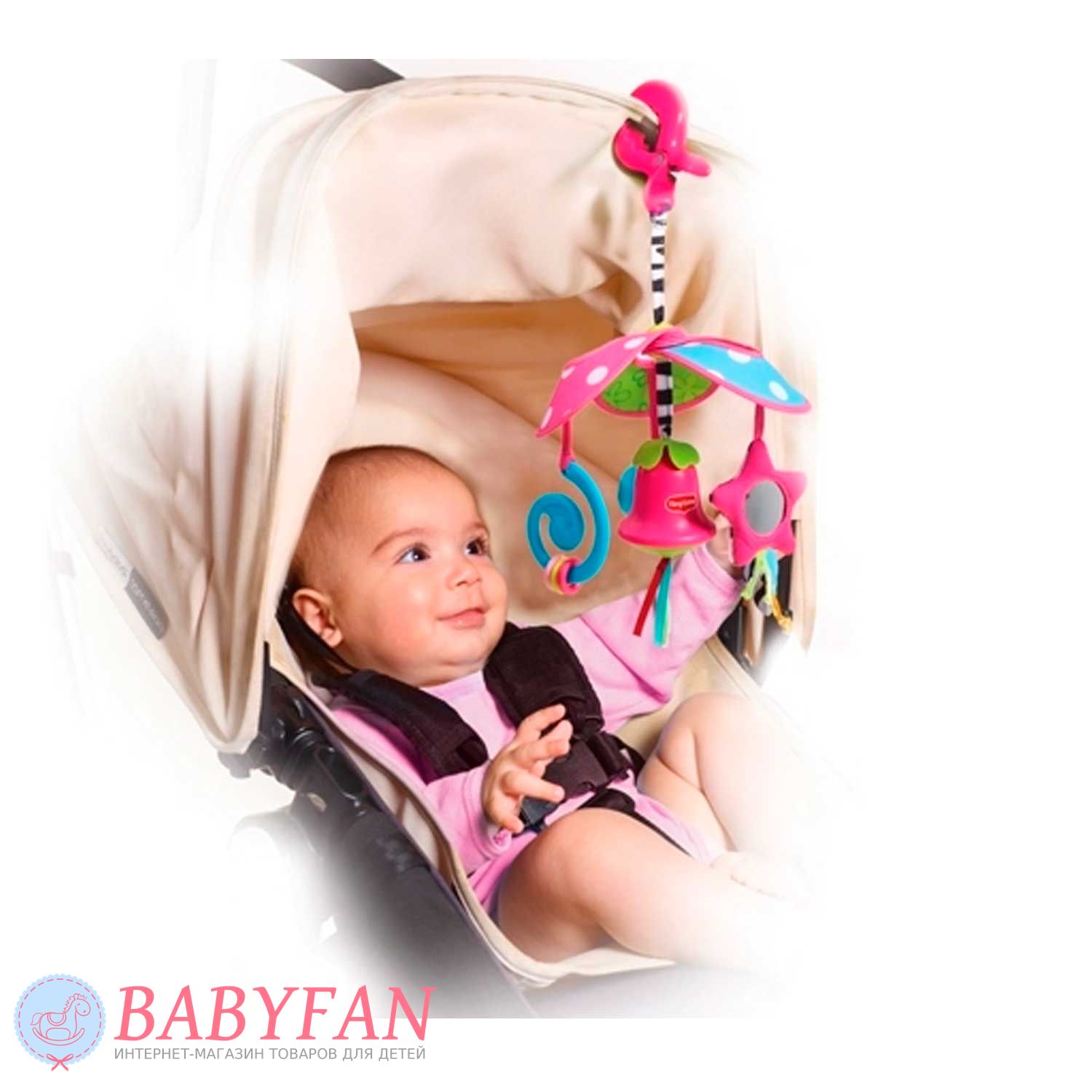 Міні мобайл на прищіпці Tiny Love Pack&Go - доладна карусель, з приємними на дотик матеріалами, яскравого забарвлення і красивим звучанням дзвіночків. Завдяки затиску можна кріпити на капюшон будь-якої коляски або на ручку автокрісла групи 0+.