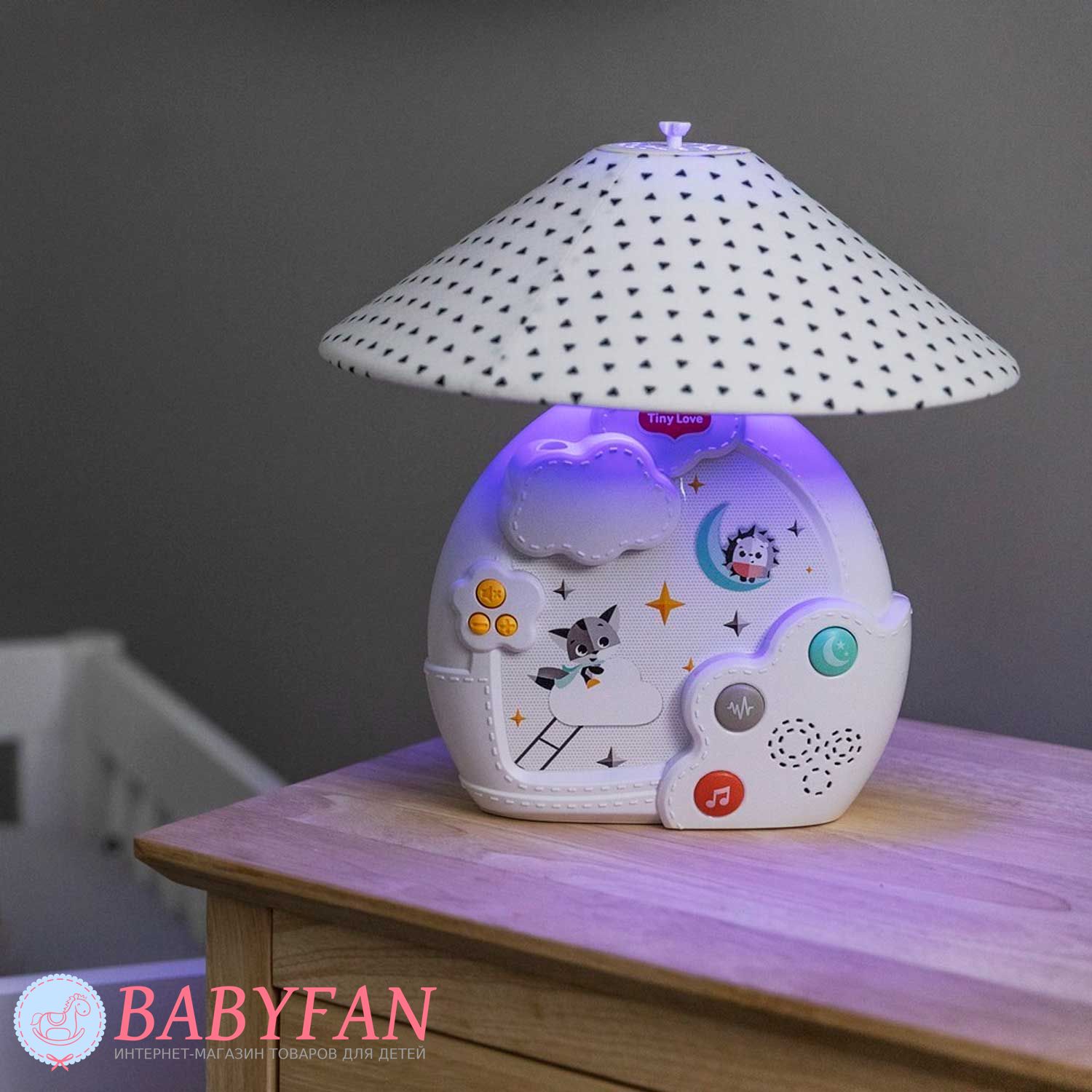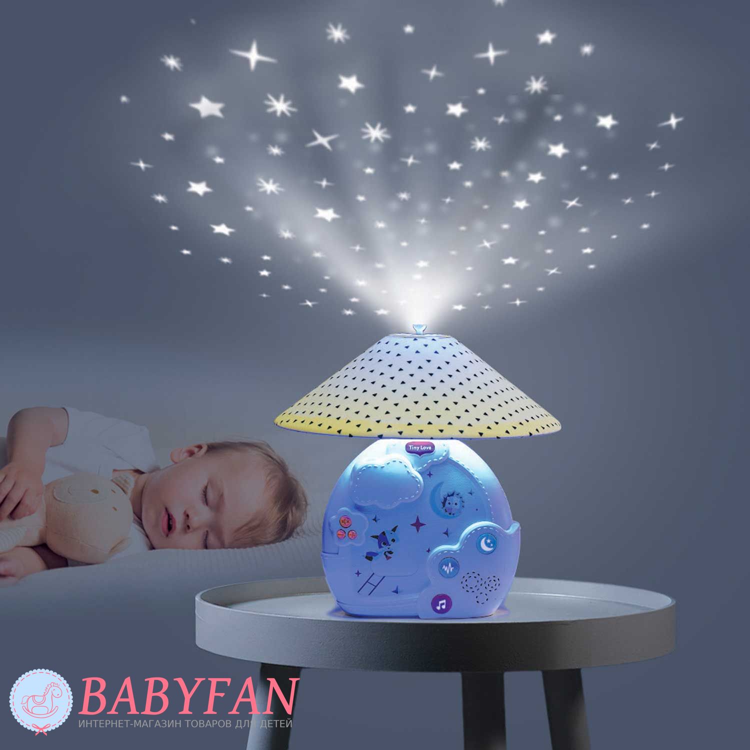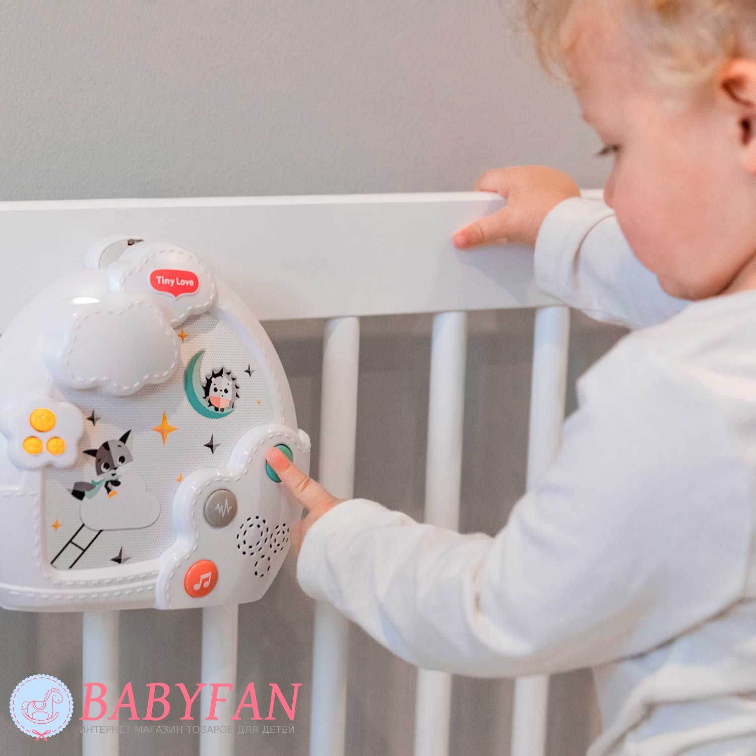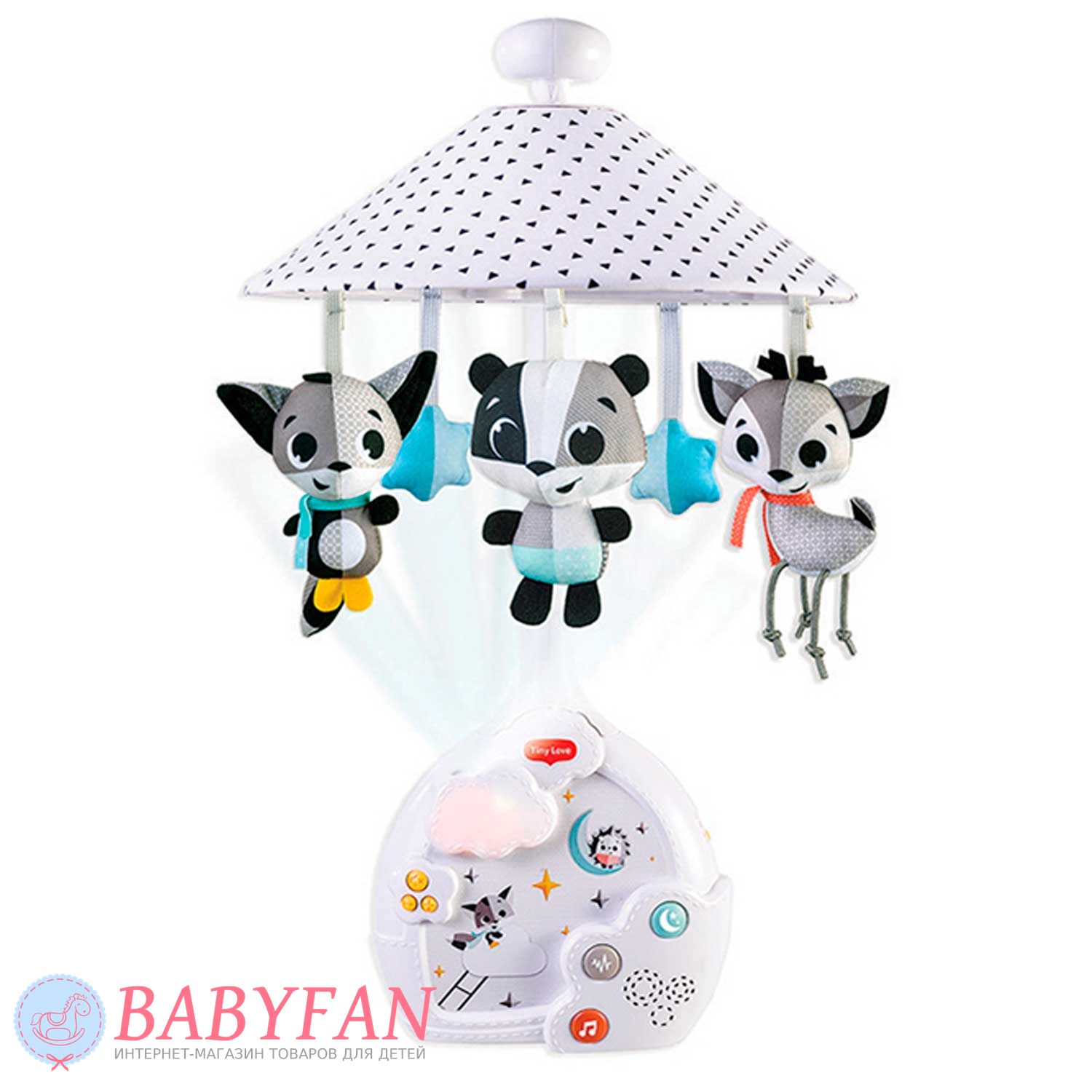 Мобіль 3 в 1 Tiny Love Нічна галявина з проектором – розроблений спеціально для комфортного та затишного відпочинку Вашого малюка. Він обладнаний проектором, який допоможе Вам створити чарівну атмосферу, проектуючи картинки в купол або на стелю дитячу. Музичний блок розважить малюка приємними мелодіями, які відносяться до 3 типів - колискова, звуки природи, класична музика. Мобіль можна використовувати як каганець, за допомогою якого під приємні мелодії можна створити над головою дитини проекції зоряного неба.