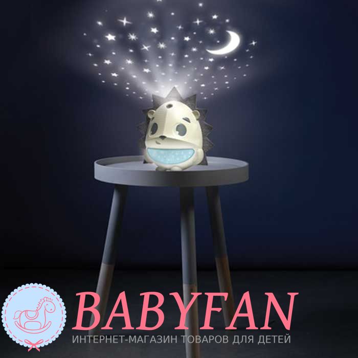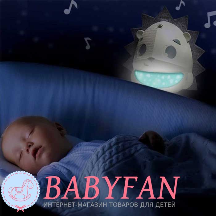 Музичний проектор Tiny Love Їжачок – створить у дитячій кімнаті чарівну атмосферу і допоможе заколисувати малюка. Він перетворює стіни і стелю на зоряне небо, а також може використовуватися як звичайний нічник, якщо потрібне невелике джерело світла. Пристрій реагує на звуки: якщо дитина прокинеться і зашумить - спрацює детектор, "Їжачок" програє мелодію і висвітлить кімнату. У проекторі передбачені регулятор гучності, регулятор яскравості нічника, вбудований MP-3 плеєр для власних мелодій та таймер на 10, 30 та 60 хвилин. Заряджається пристрій двома способами: за допомогою вбудованої батареї, що перезаряджається, і через USB-порт. Проектор відтворює 5 різних категорій звуків, серед яких 17 мелодій: «білий шум», звуки природи, звуки моря, колискові пісні та класичні твори. Час відтворення музики – 35 хвилин та більше. Такий аксесуар чудово розвиває у малюків зорове та слухове сприйняття, заспокоює та сприяє гарному сну.