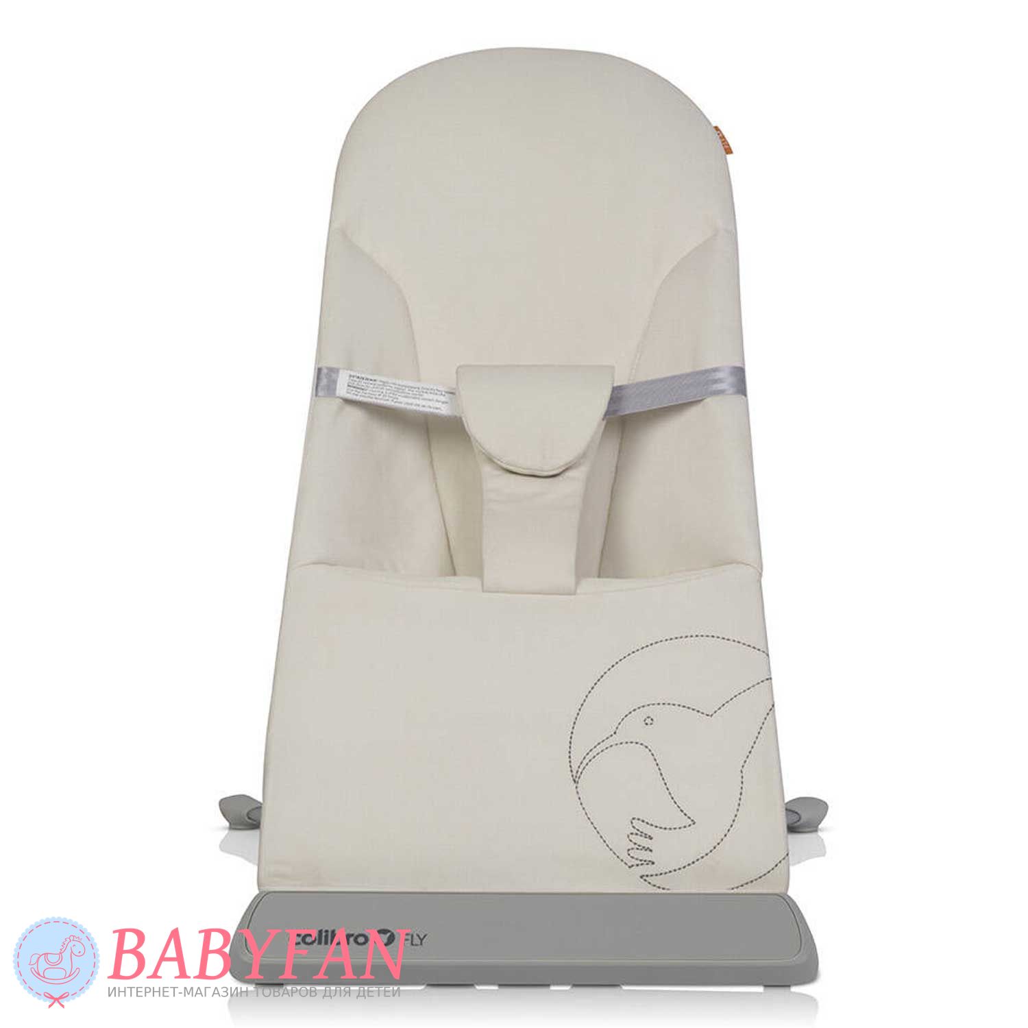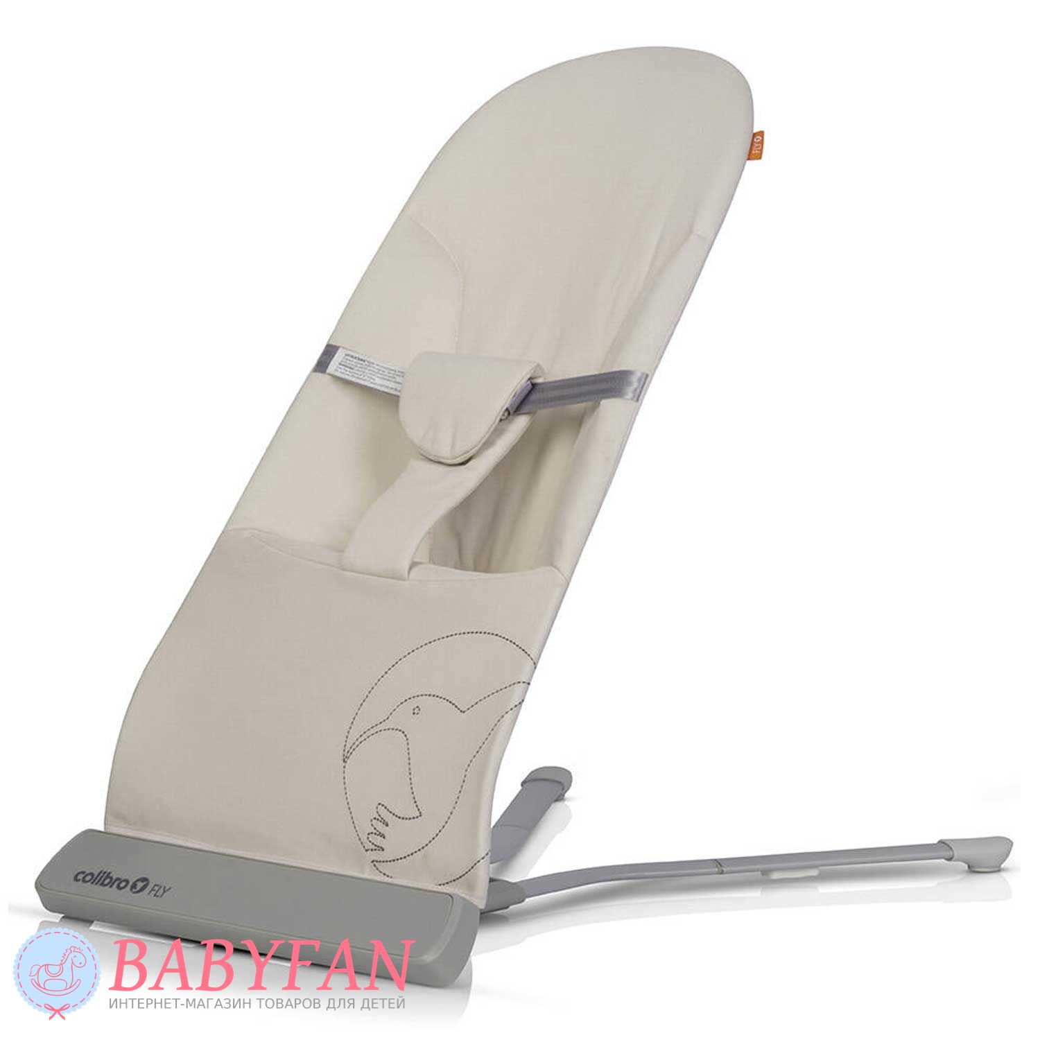 За безпеку дитини Colibro Fly відповідають 3-точкові ремені безпеки з текстильною накладкою між ніжок і надійним замком. Стійка конструкція спирається на поверхню у 6 точках. В основі є прогумовані накладки. Спинка сидіння регулюється по висоті. Електронний блок керування оснащений вібромотором для автоматичного м'якого розгойдування. Працює від батарейок. Для перенесення чи подорожей компактно та легко складається.
