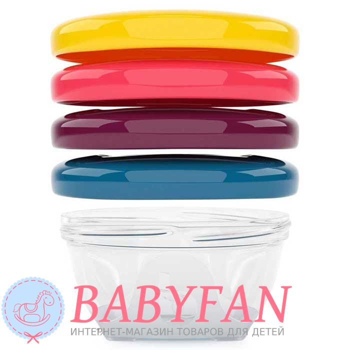 Набір контейнерів для їжі Babymoov Babybols 4 шт, 120 мл – ідеально підходять для зберігання дитячого харчування зі 100% герметичною кришкою. Ви також можете легко підписувати їх, використовуючи їх поверхню, що перезаписується.
