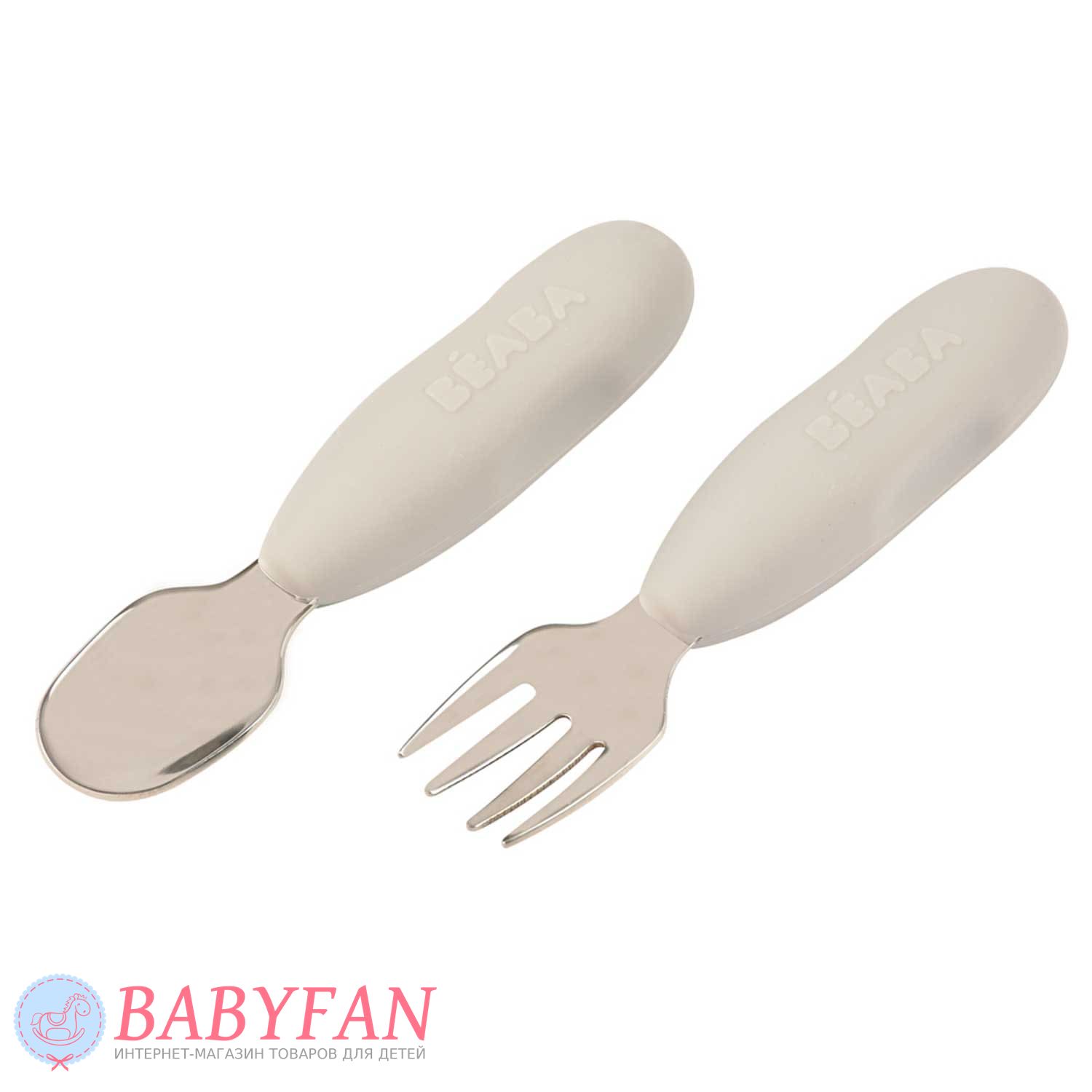 Характеристики набору ложка та вилка Beaba металеві 10+:
