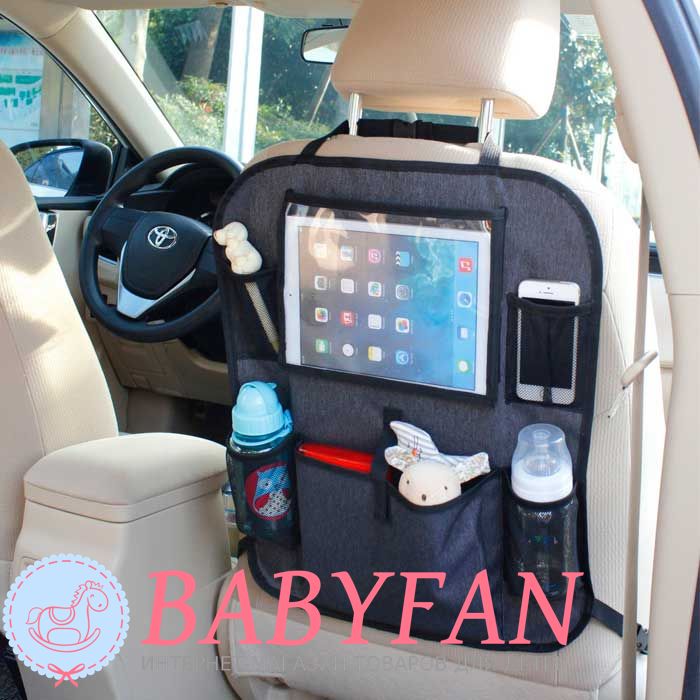 Організатор для автомобіля BabyDan – допоможе тримати потрібні речі в одному місці. Легко кріпиться на спинку переднього сидіння. Захищає від забруднення дитячими ногами сидіння автомобіля.