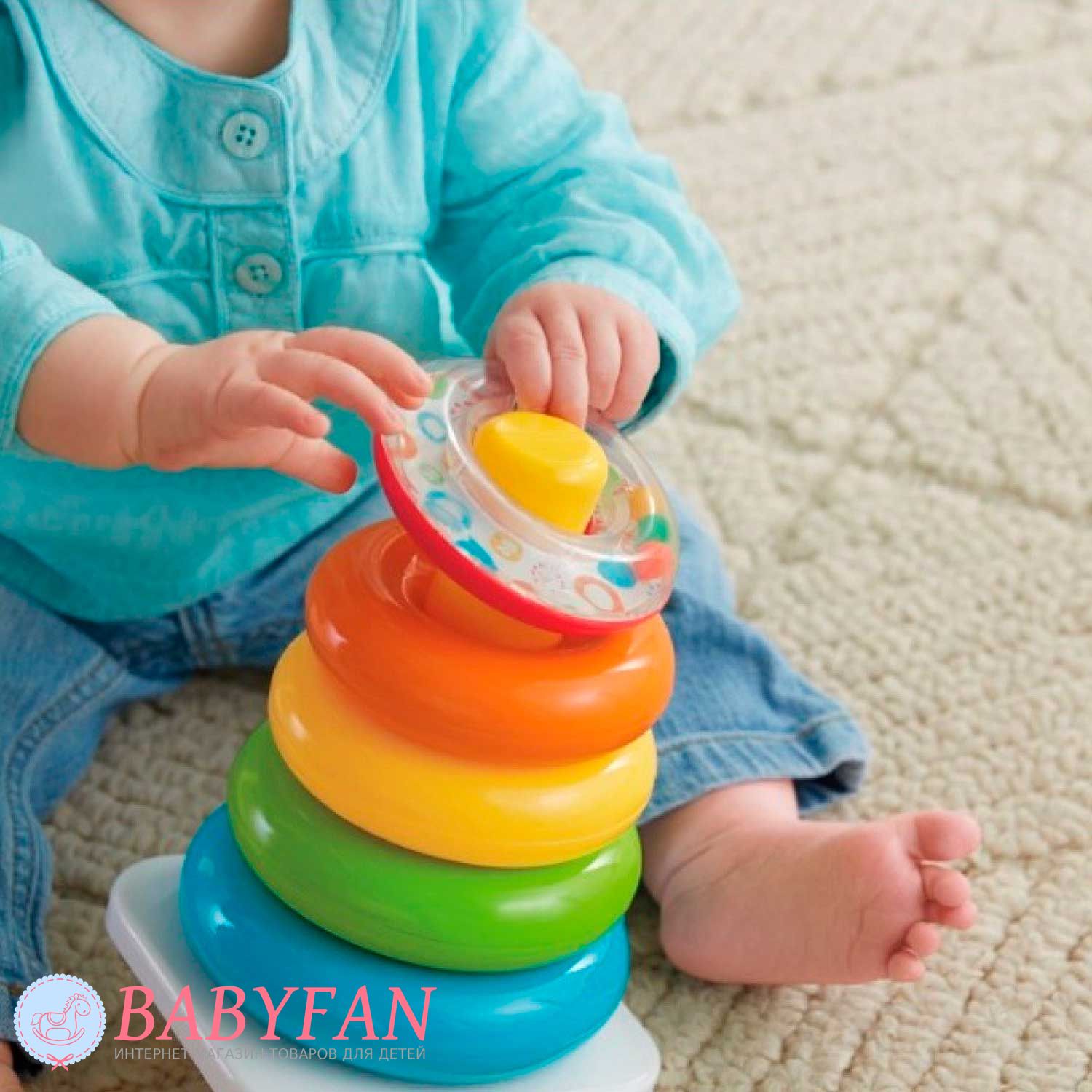 - всі кільця пірамідки мають зручну форму, призначену спеціально для дитячих ручок;