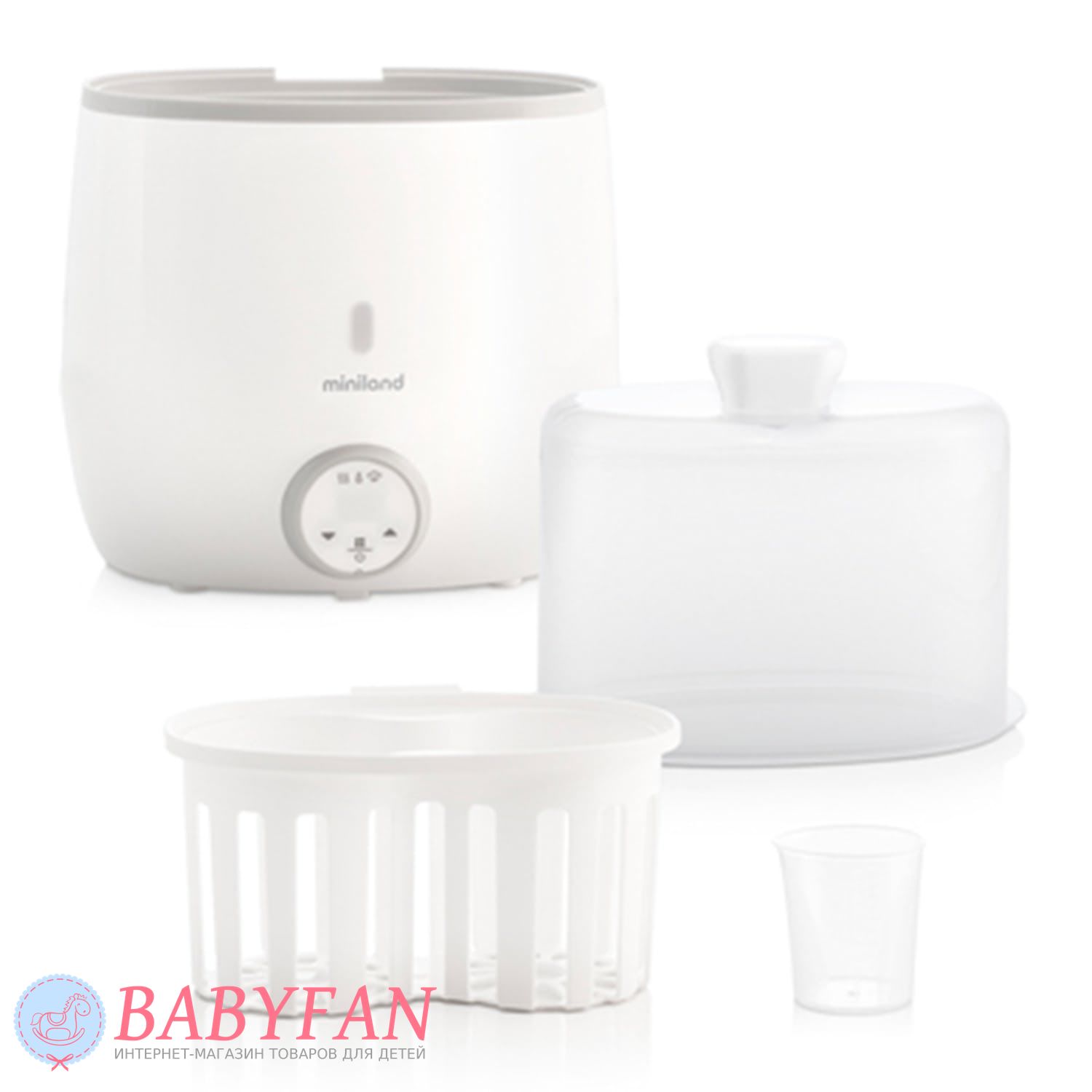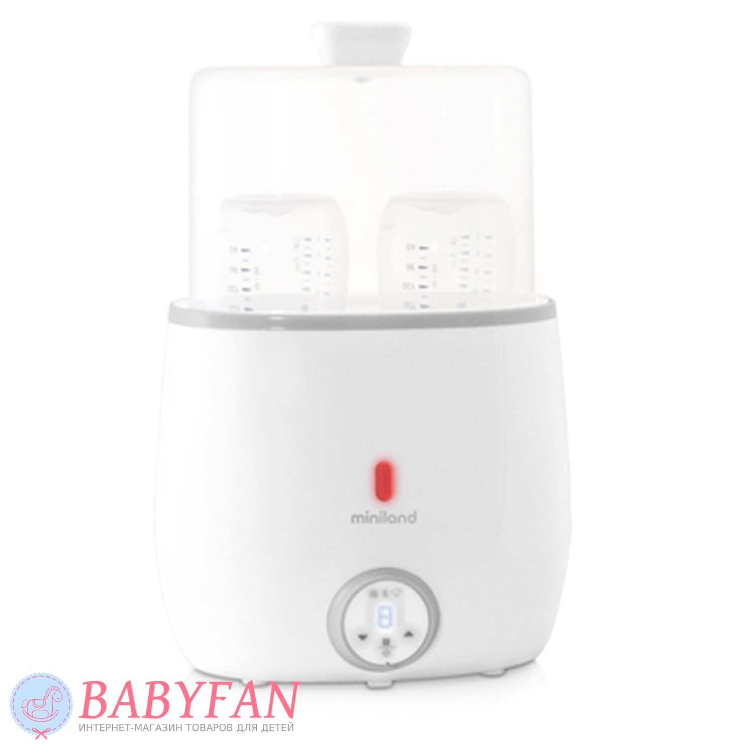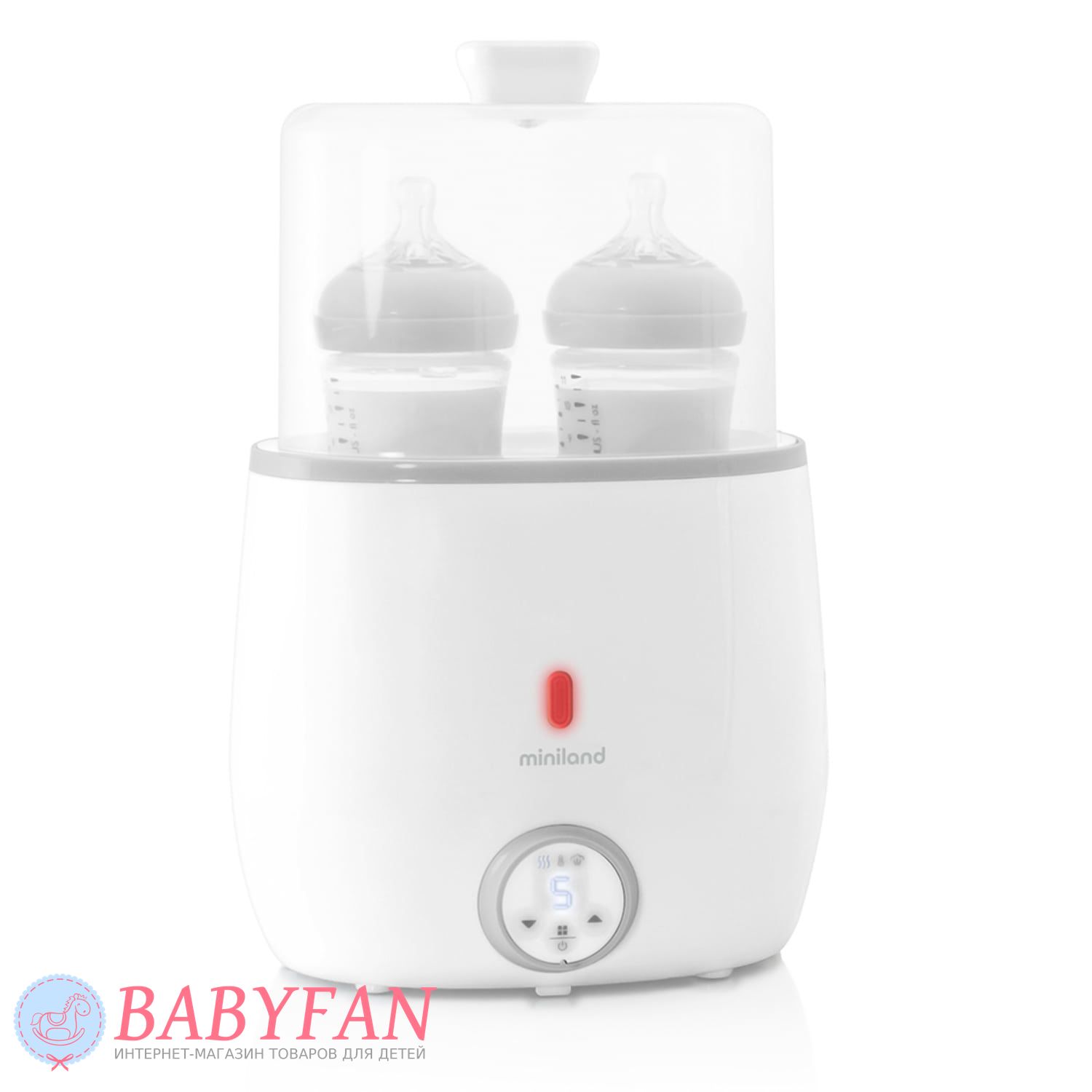 Підігрівач-стерилізатор на 2 пляшечки Miniland Baby Warmy Twin – багатофункціональний підігрівач-стерилізатор, що забезпечує стерилізацію пляшечок для годування, аксесуарів та підігрів/розморожування сумішей для дітей. Завдяки одночасної стерилізації двох пляшечок з молоком або дитячим харчуванням, прилад оптимально підходить для сімей, що ростуть двох дітей. Зручний в експлуатації підігрівник-стерилізатор забезпечує швидку стерилізацію та підігрів природним способом за допомогою пари. Підігрівач-стерилізатор Miniland Baby Warmy Twin є вірним помічником для молодих батьків.