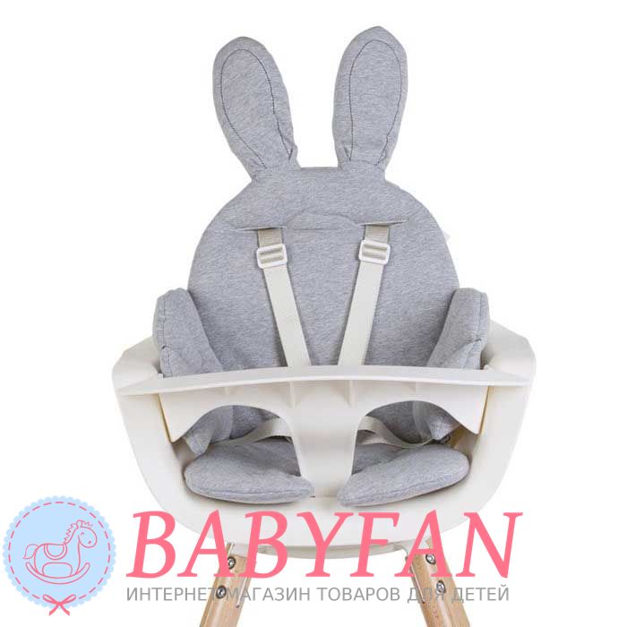 Подушка Childhome Rabbit – м'який вкладиш для стільчика зробить їжу для Вашого ребека ще приємніше і зручніше. А цікавий дизайн у вигляді зайчика зацікавить будь-яку дитину. Виготовлена з приємної та стирається машиною трикотажної тканини. Подушка сидіння має отвори для 5-точкового ременя безпеки.