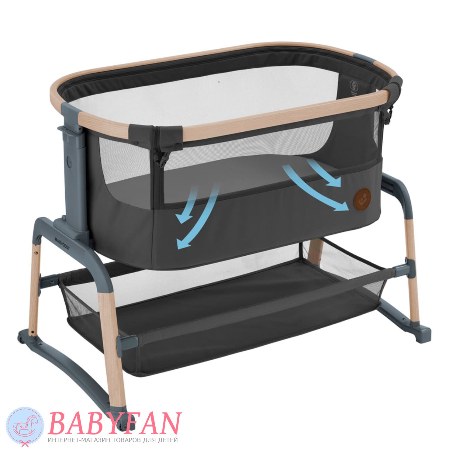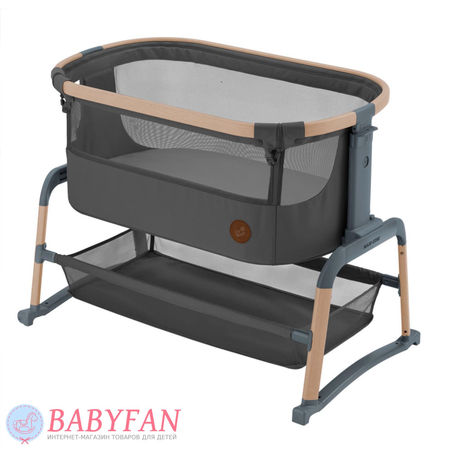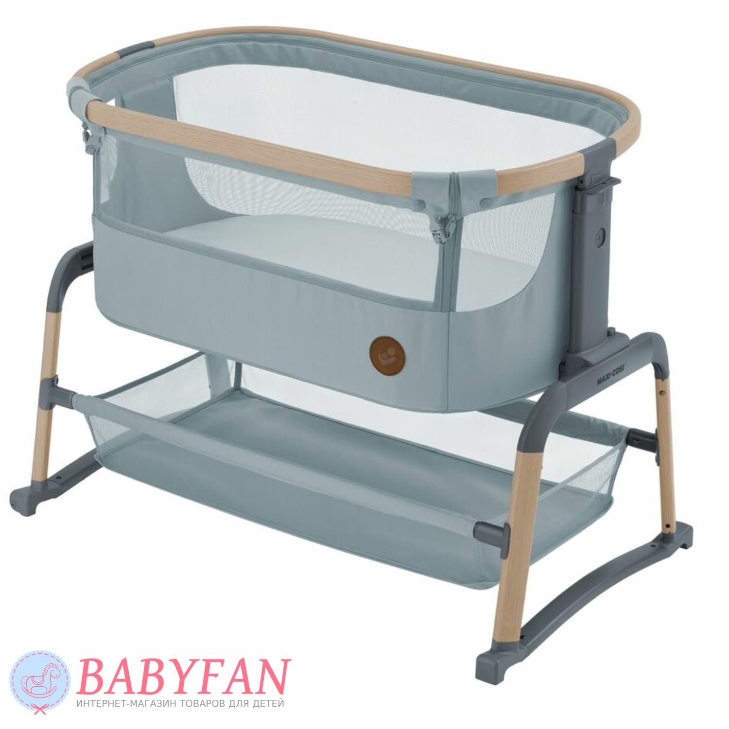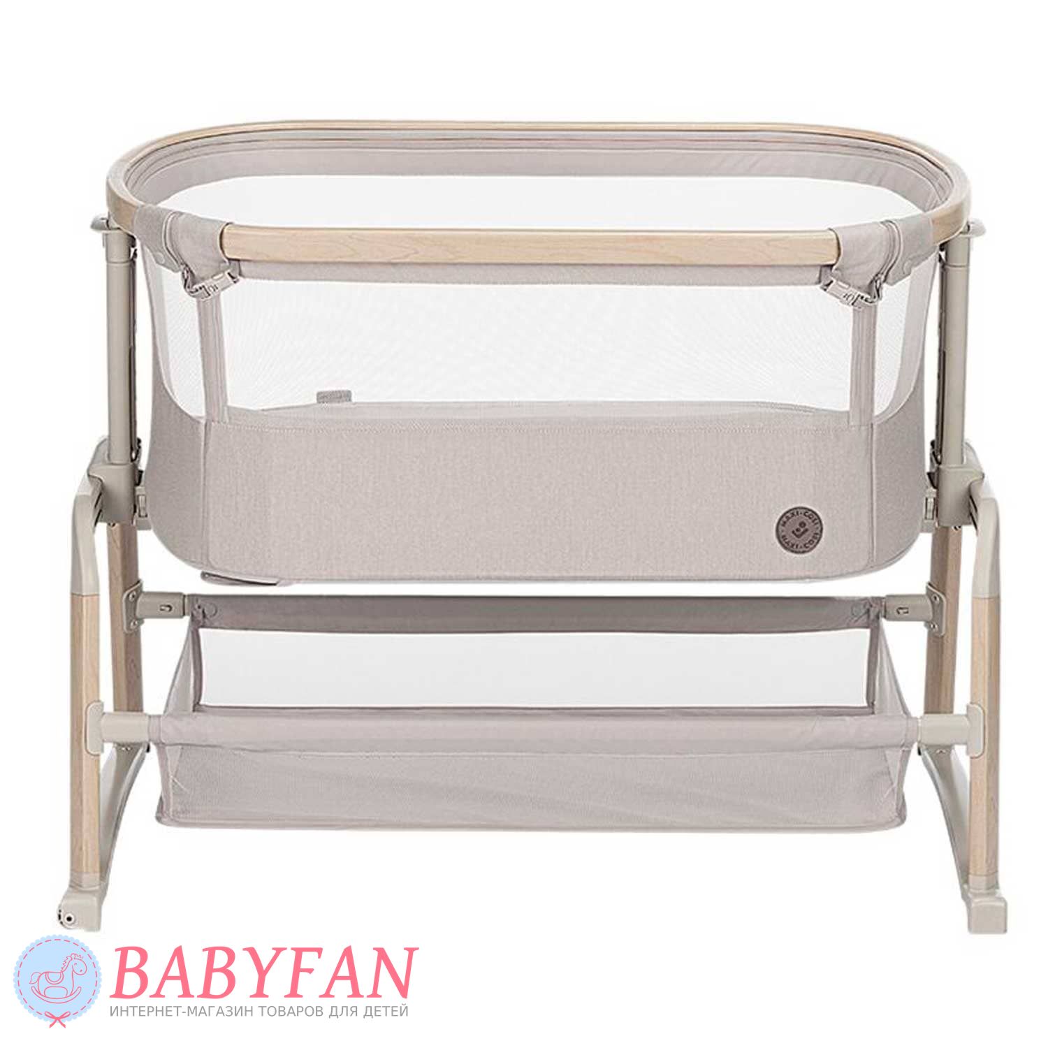 Maxi-Cosi Lora Air – це стильне ліжечко-колиска для новонароджених немовлят до 1 року, обмеження за вагою дитини – до 9 кг, овальної форми. Відмінна альтернатива спільному сну мами та дитини – опустіть бортик, застібається на блискавку, та приставте колиску до батьківського ліжка – дитина спатиме на відстані витягнутої руки. Висота колиски регулюється. Борти м'які обтягнуті щільною тканиною – захищають від протягів. Внутрішня частина знімна оббивки, виготовлена з бавовни, застібається на блискавку. Матрацик м'який, ортопедичний. Оглядове віконце в бортику дозволяє контролювати сон дитини не встаючи з ліжка. Для зберігання дитячого ліжка, іграшок та іншого приладдя під колискою розташований місткий кошик. Колиску складається – можна виносити на вулицю та брати у подорожі на автомобілі.