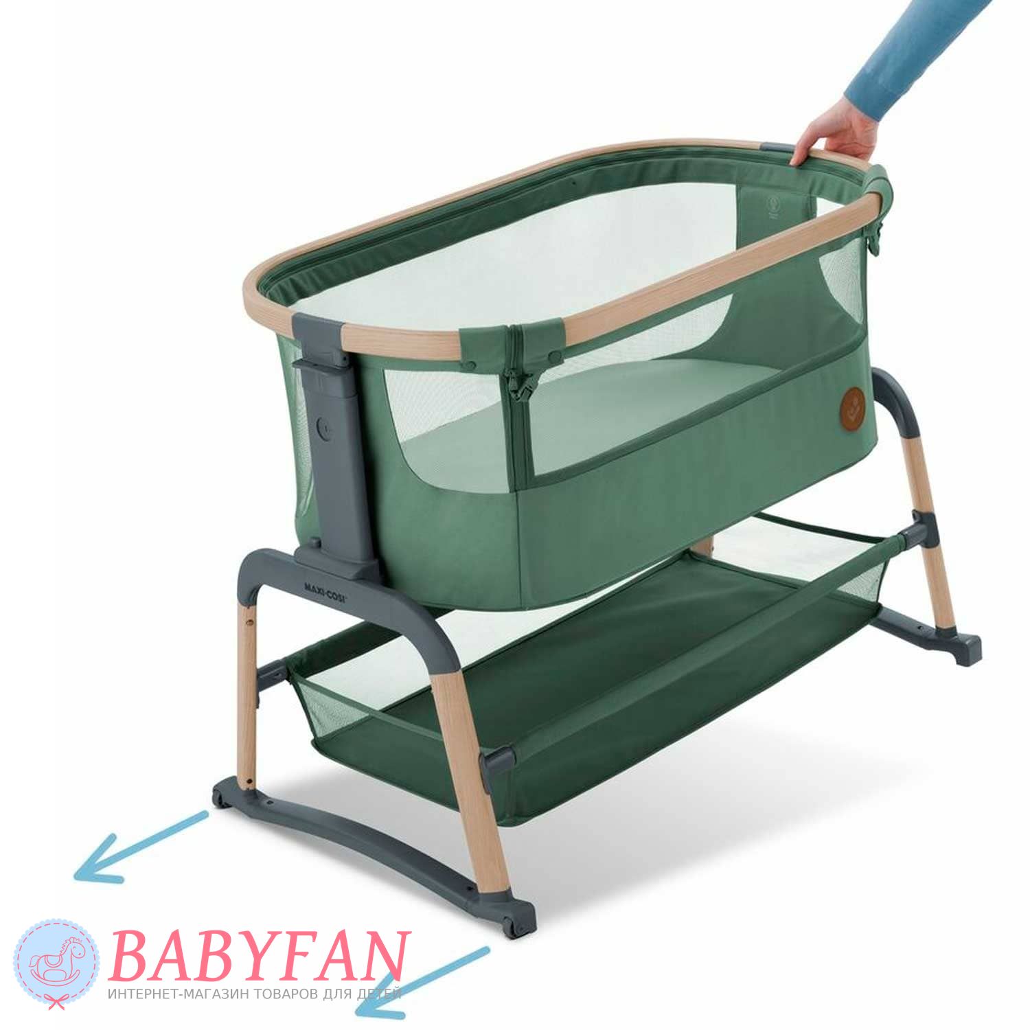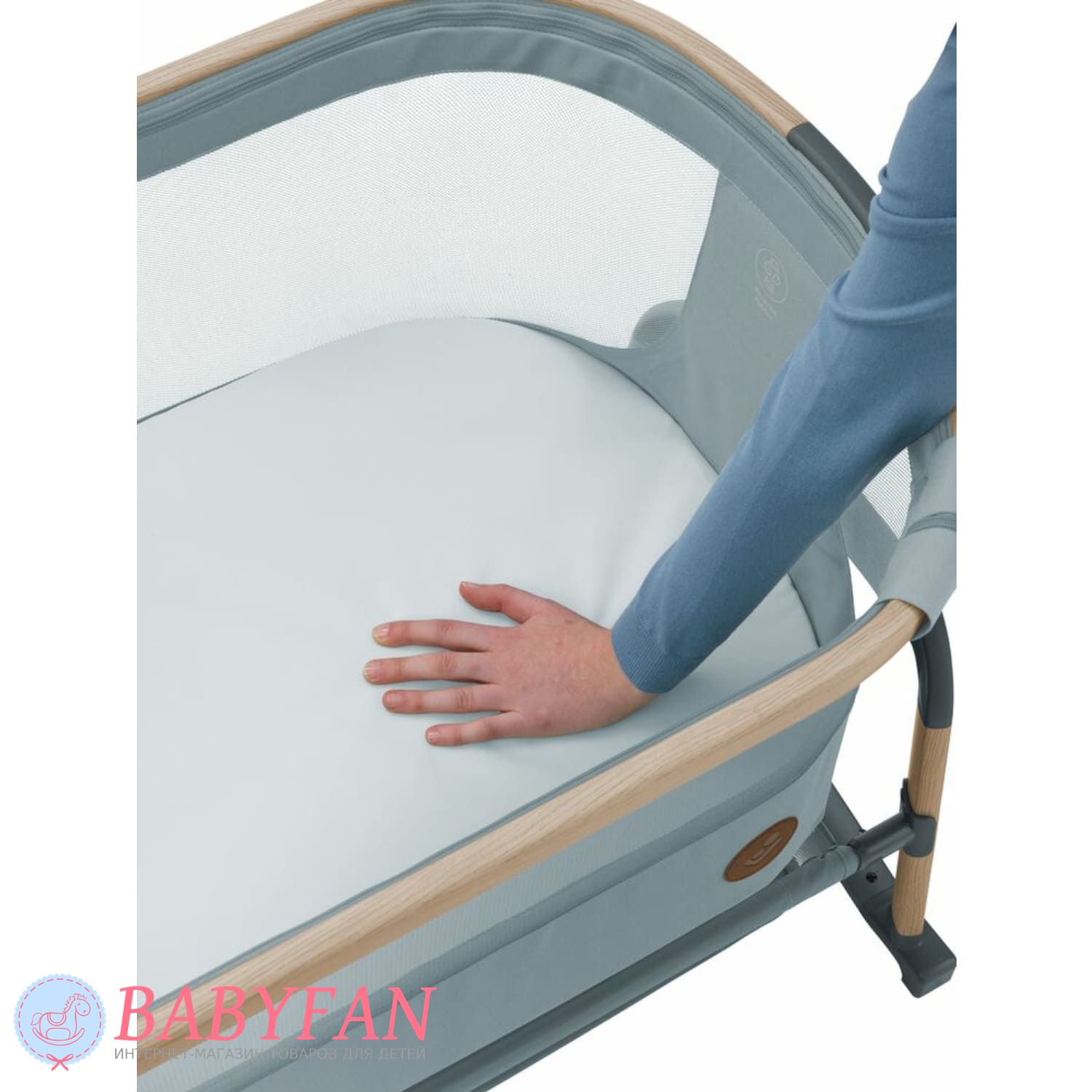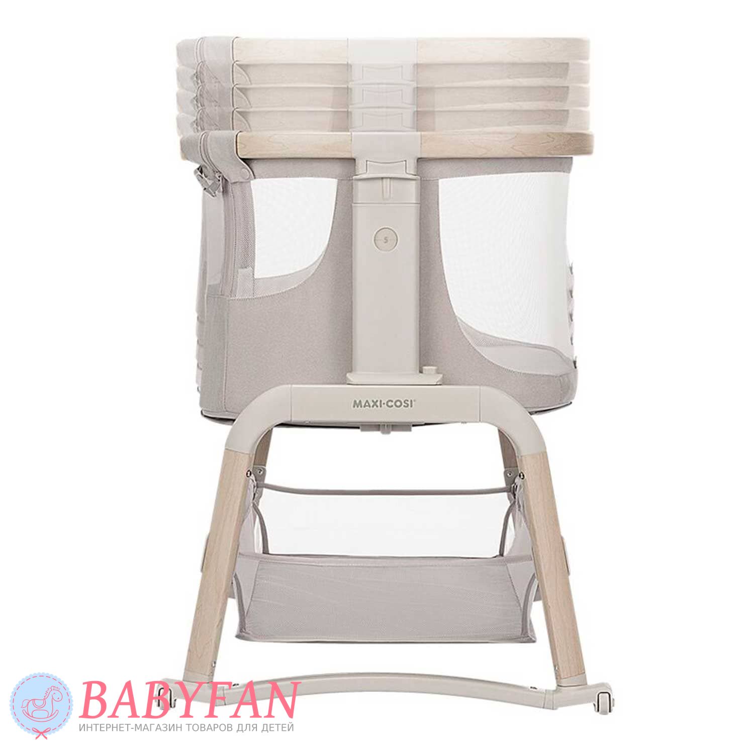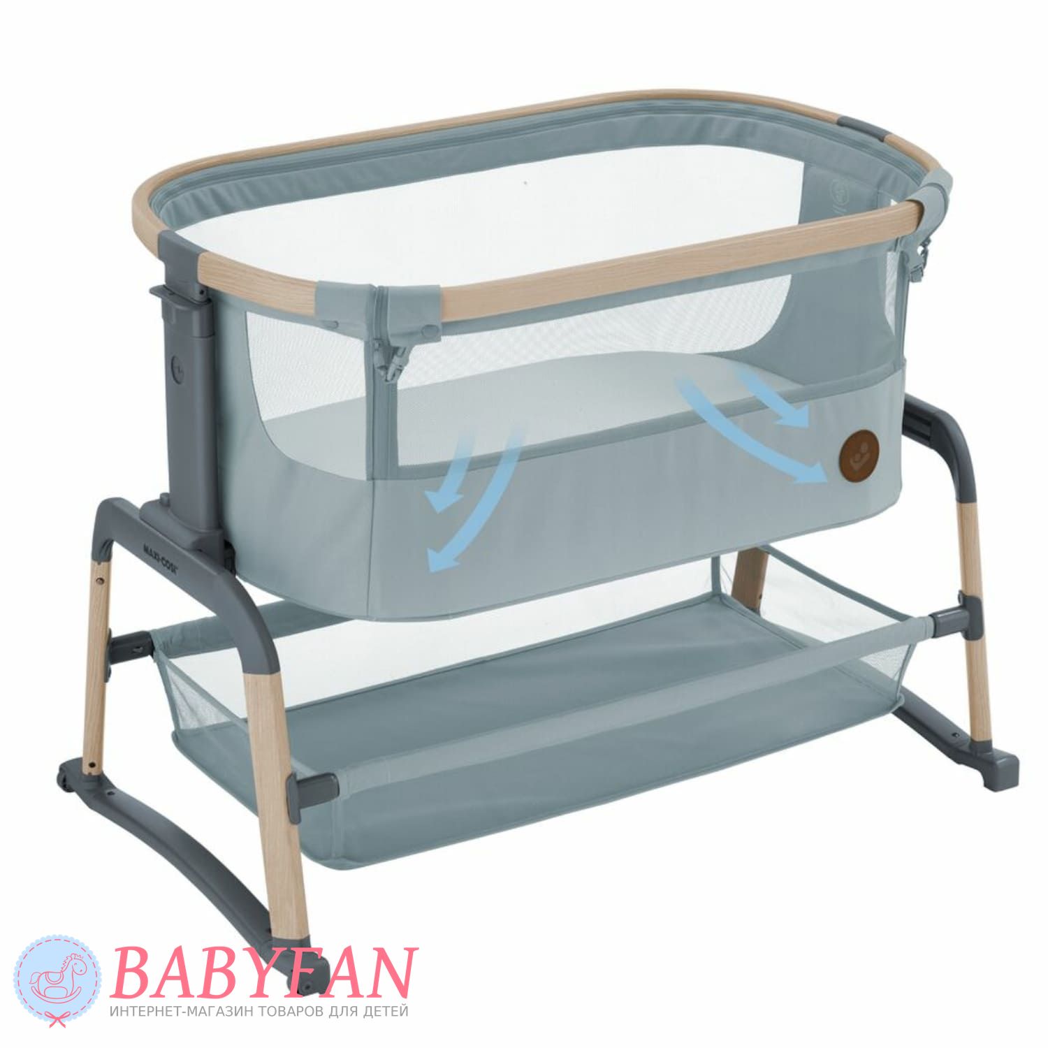 Maxi-Cosi Lora Air – це стильне ліжечко-колиска для новонароджених немовлят до 1 року, обмеження за вагою дитини – до 9 кг, овальної форми. Відмінна альтернатива спільному сну мами та дитини – опустіть бортик, застібається на блискавку, та приставте колиску до батьківського ліжка – дитина спатиме на відстані витягнутої руки. Висота колиски регулюється. Борти м'які обтягнуті щільною тканиною – захищають від протягів. Внутрішня частина знімна оббивки, виготовлена з бавовни, застібається на блискавку. Матрацик м'який, ортопедичний. Оглядове віконце в бортику дозволяє контролювати сон дитини не встаючи з ліжка. Для зберігання дитячого ліжка, іграшок та іншого приладдя під колискою розташований місткий кошик. Колиску складається – можна виносити на вулицю та брати у подорожі на автомобілі.