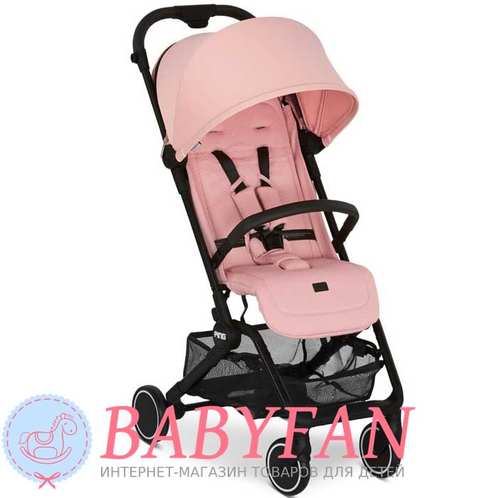 ABC Design Ping – це ультралегка коляска для новонароджених немовлят до 3 років. Ідеальний помічник у подорожах з маленькою дитиною: компактно складається – поміщається у ручну поклажу літака, легка – важить 7 кг. Складається, розкладається та керується однією рукою. М'яке сидіння, амортизація на передніх колесах та регулювання спинки та підніжки забезпечать дитині необхідний рівень комфорту на прогулянках асфальтованими міськими дорогами. Регульований каптур з водовідштовхувальним покриттям захистить малюка від ультрафіолетового випромінювання, дощу та вітру.